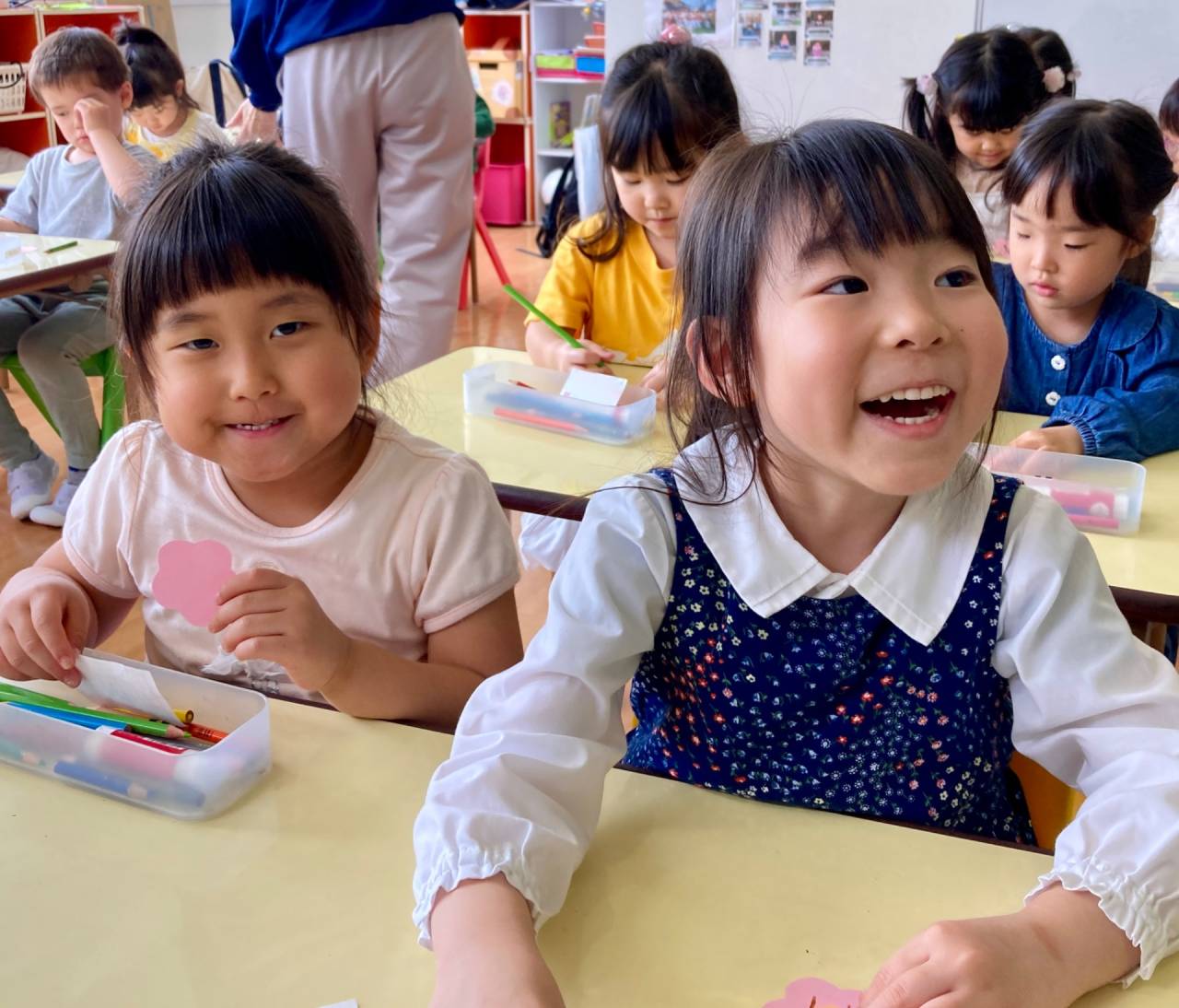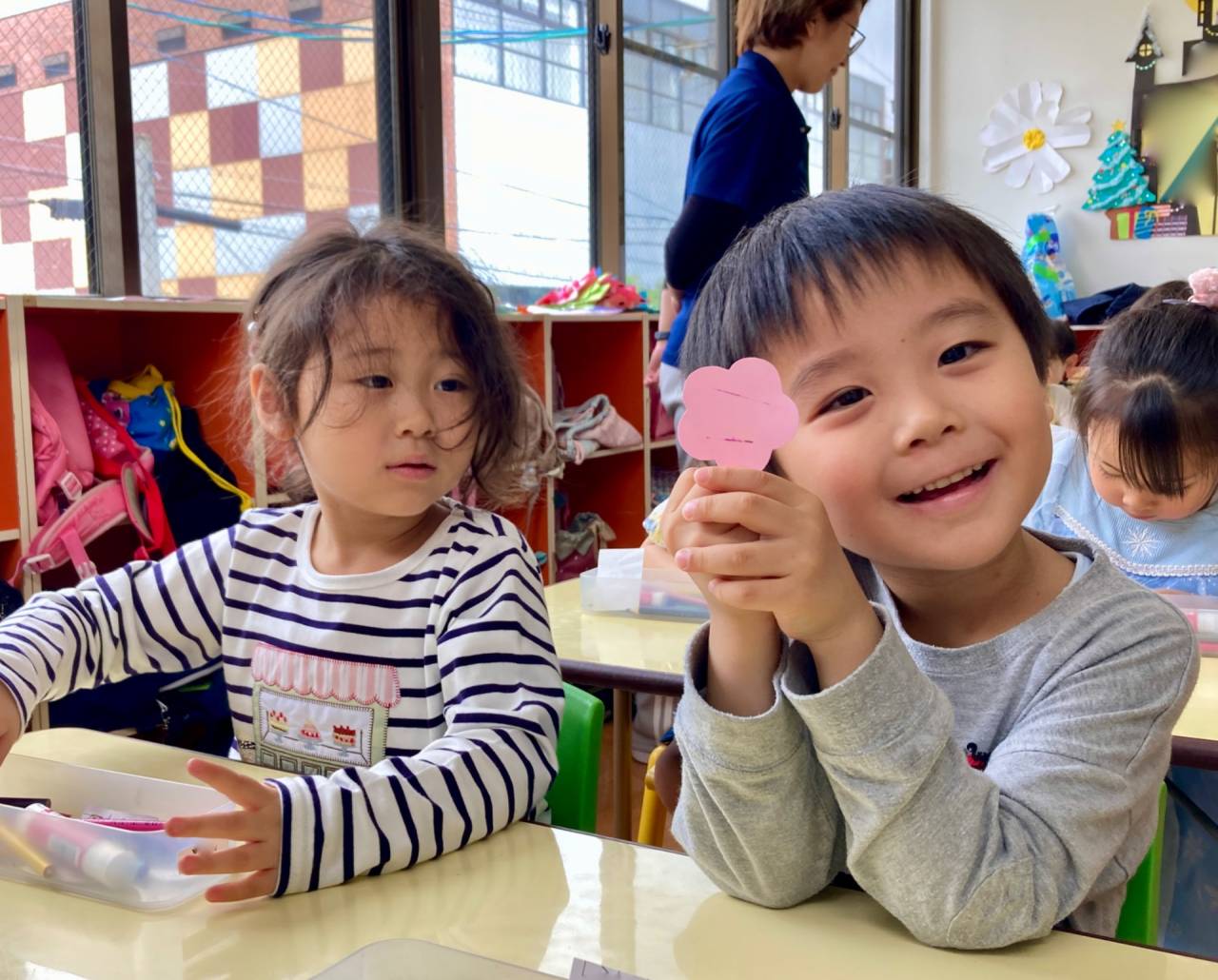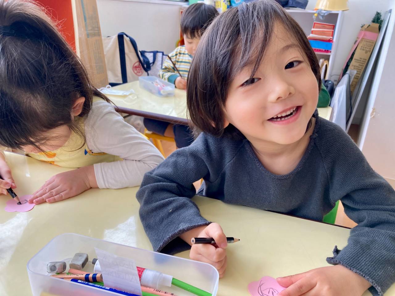 This Mother’s Day craft is also an important learning opportunity for Kindy 2. As they write their messages, they are practicing their handwriting, and learning new vocabulary, which helps strengthen their writing skills.