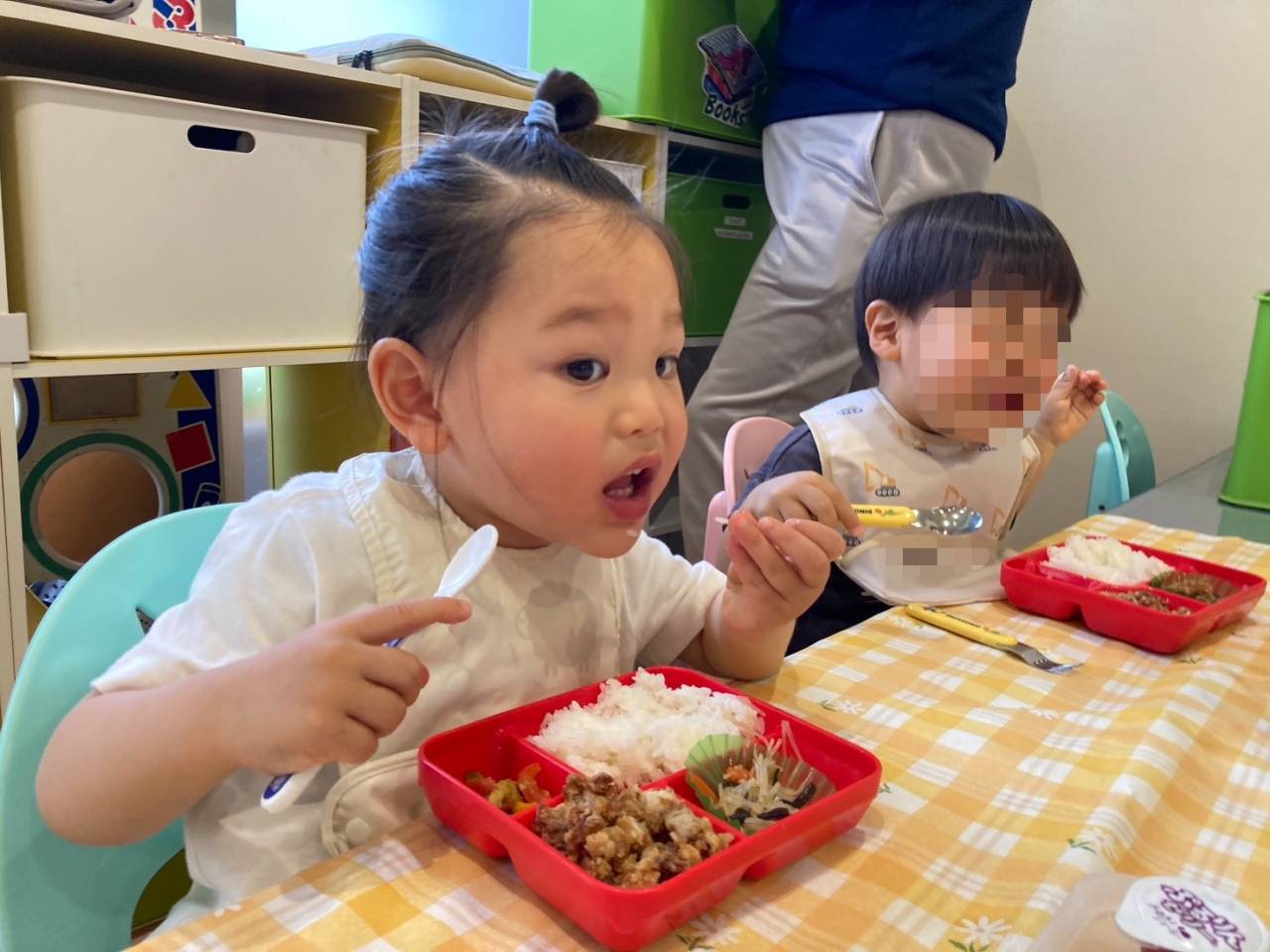 お友だちと一緒に食べられる日は、うれしそうです♪