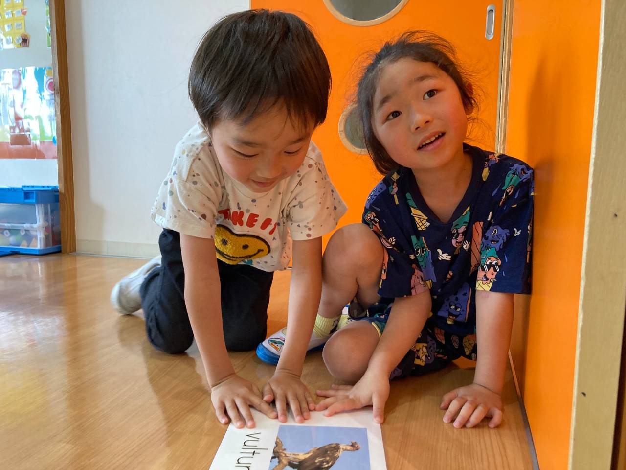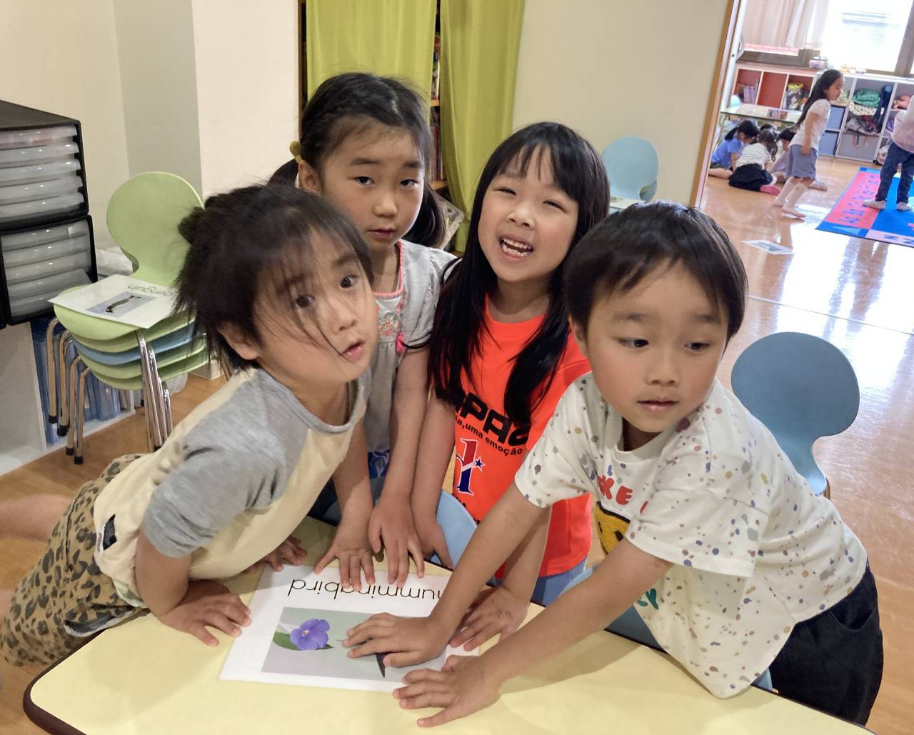 After everyone had found a bird, we went back to our spots and shared the names of the birds we discovered. Now we all know a little more about birds and their names in English—and we had so much fun learning them!