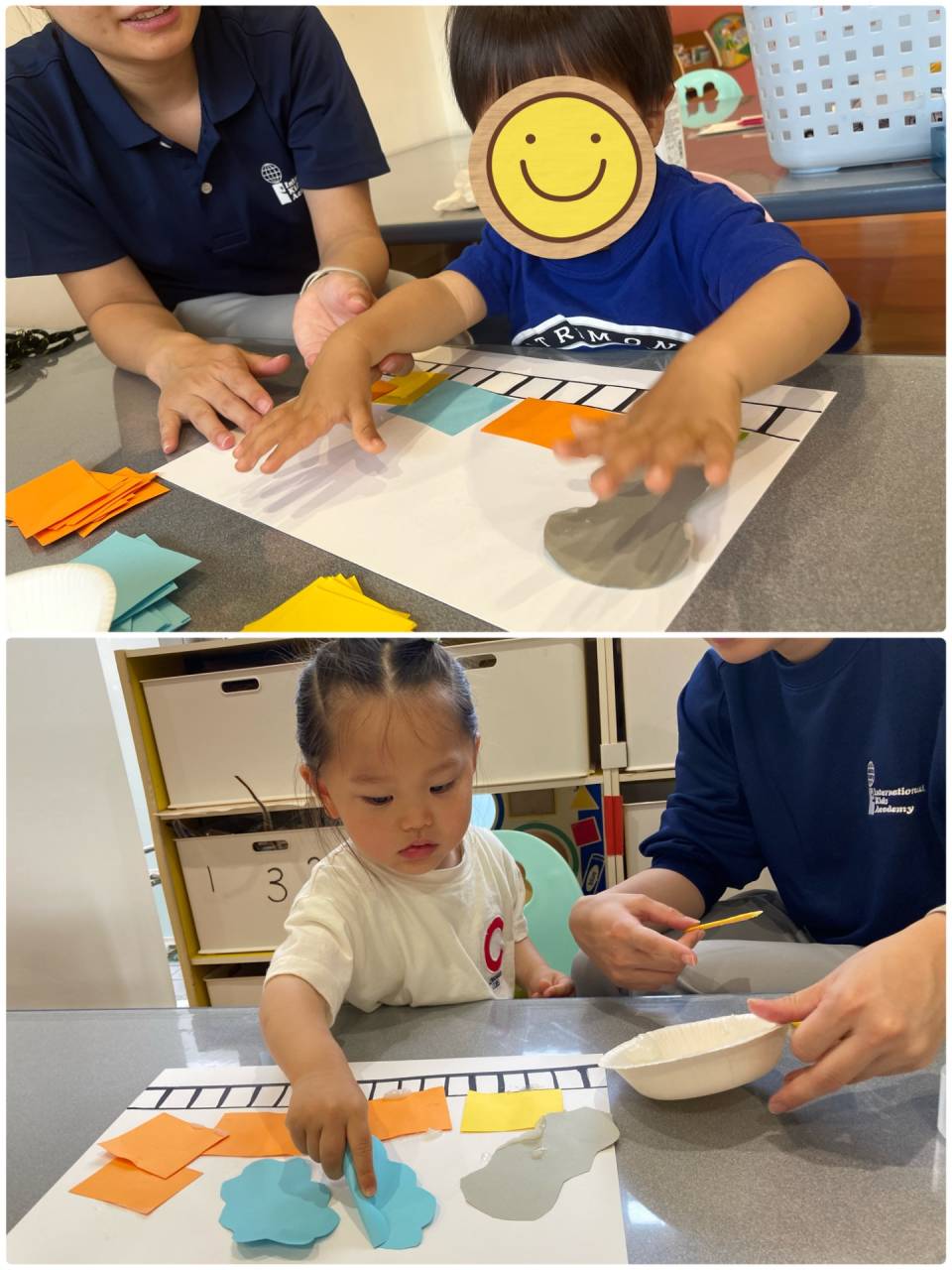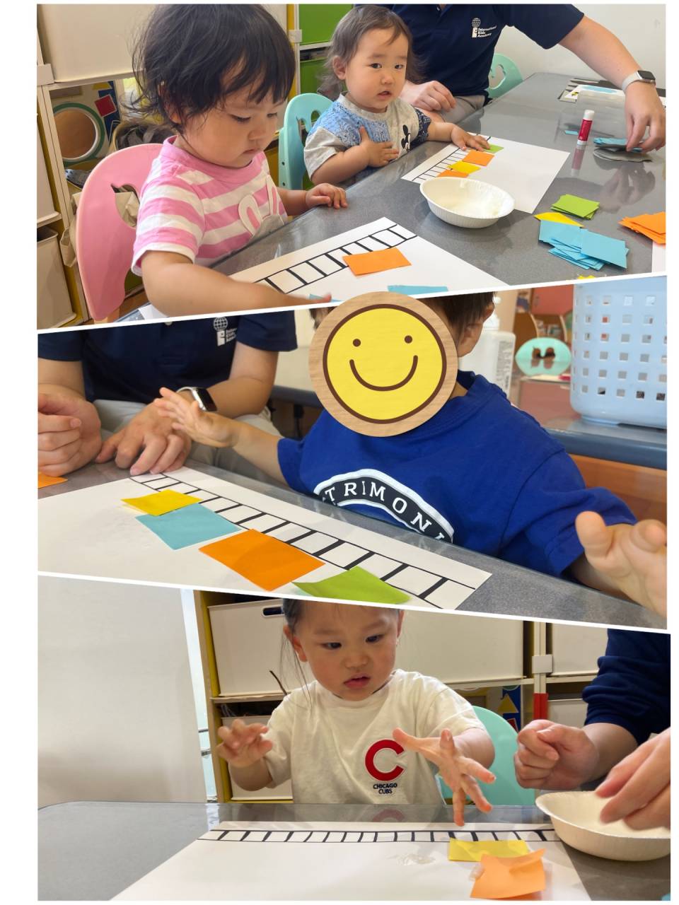 We put the paper into glue to make it stick! It also stuck to our fingers!