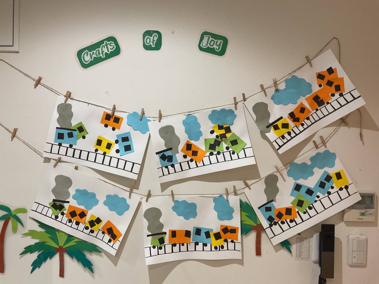 We had lots of fun making these trains! They add lots of color to our classroom and we hope you like them!