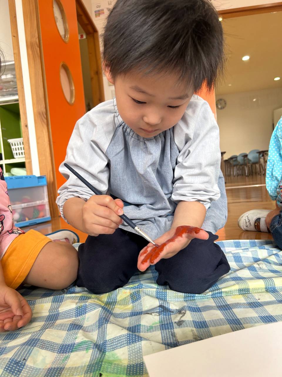 自分で塗ったり、お友達に塗ってもらったり、、、