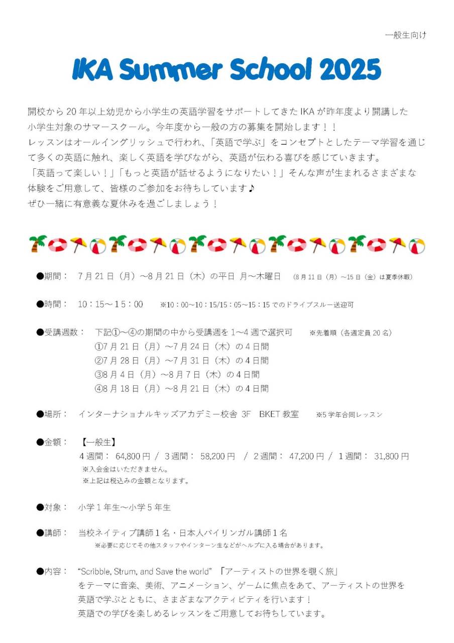 この夏は、IKAで一緒に英語で学び、英語で楽しく夏休みを過ごしませんか?