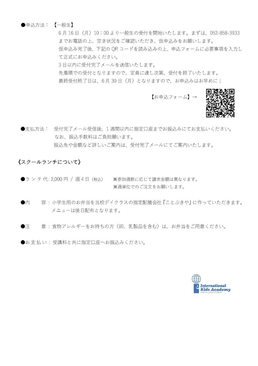 小学生対象Summer Schoolついに一般生募集開始!!