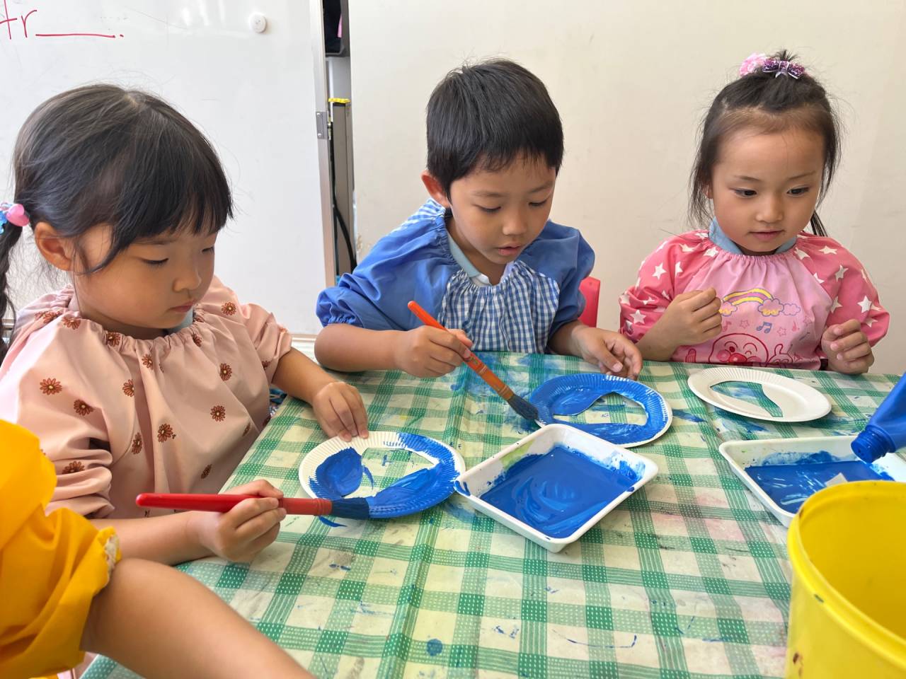 最後は子どもたちから何度もリクエストがあったペイント!筆を使って色を塗る貴重な機会に、大喜び!とても集中して塗っていました!