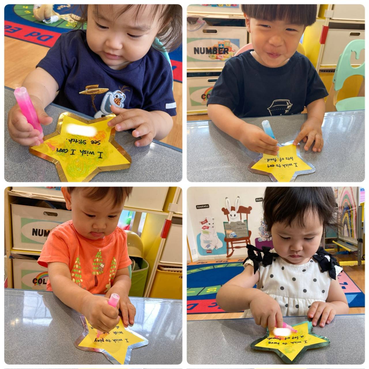 あっという間に梅雨の季節が終わり、ついに暑〜い夏がやってきましたね!Small Kidsのみんなはこの暑さにも負けず、毎日全力で遊んでいますよ!さて7月7日は七夕ということで、一人ずつ願い事を作ってみました☆ 今日はその様子をお届けします♪
