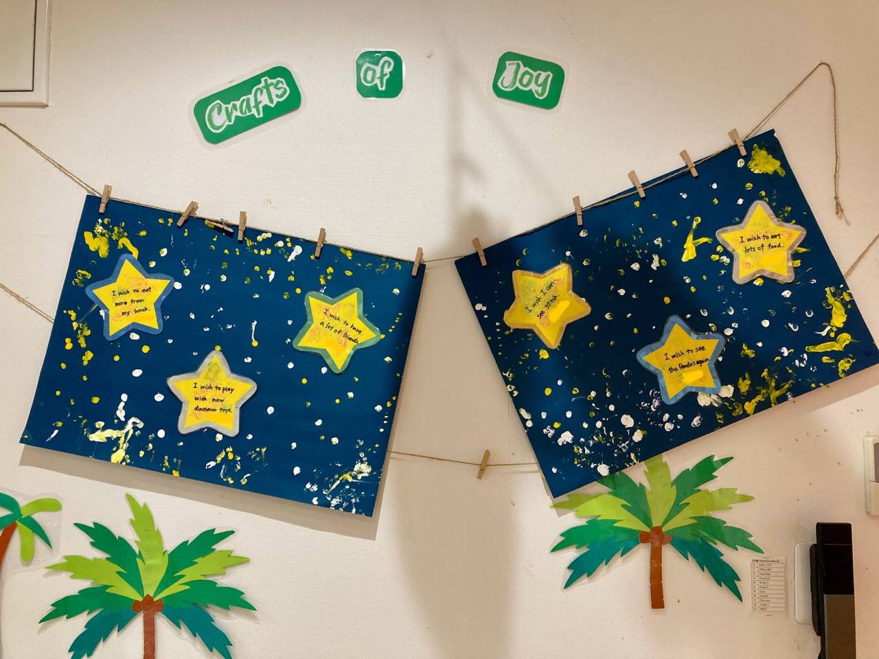 最後はここに、一人ずつ頑張って作ったお星様をのせていこう〜!☆