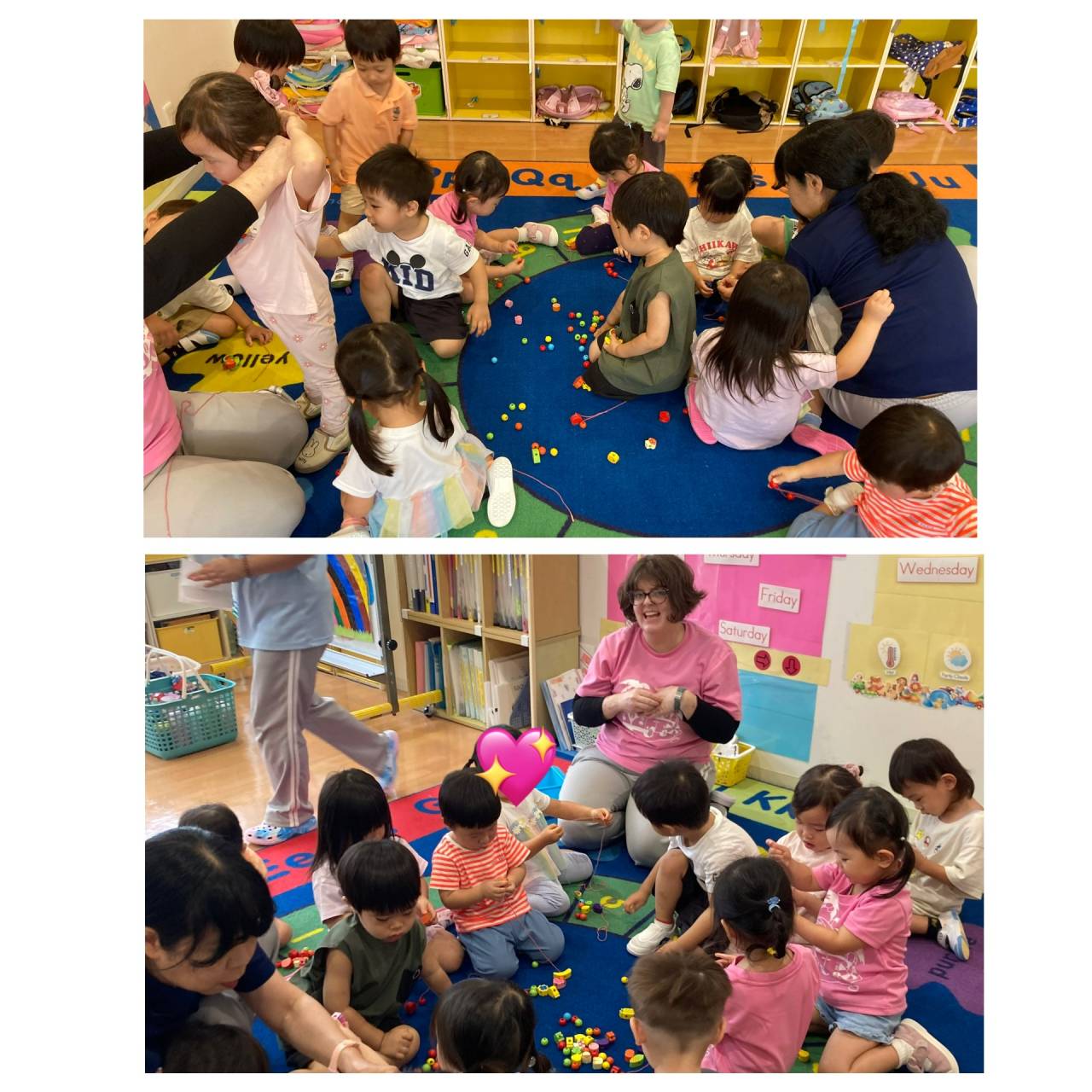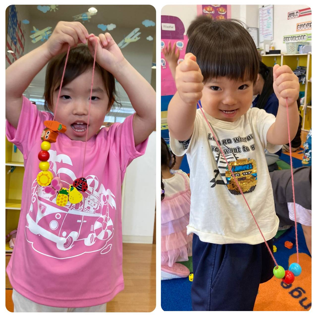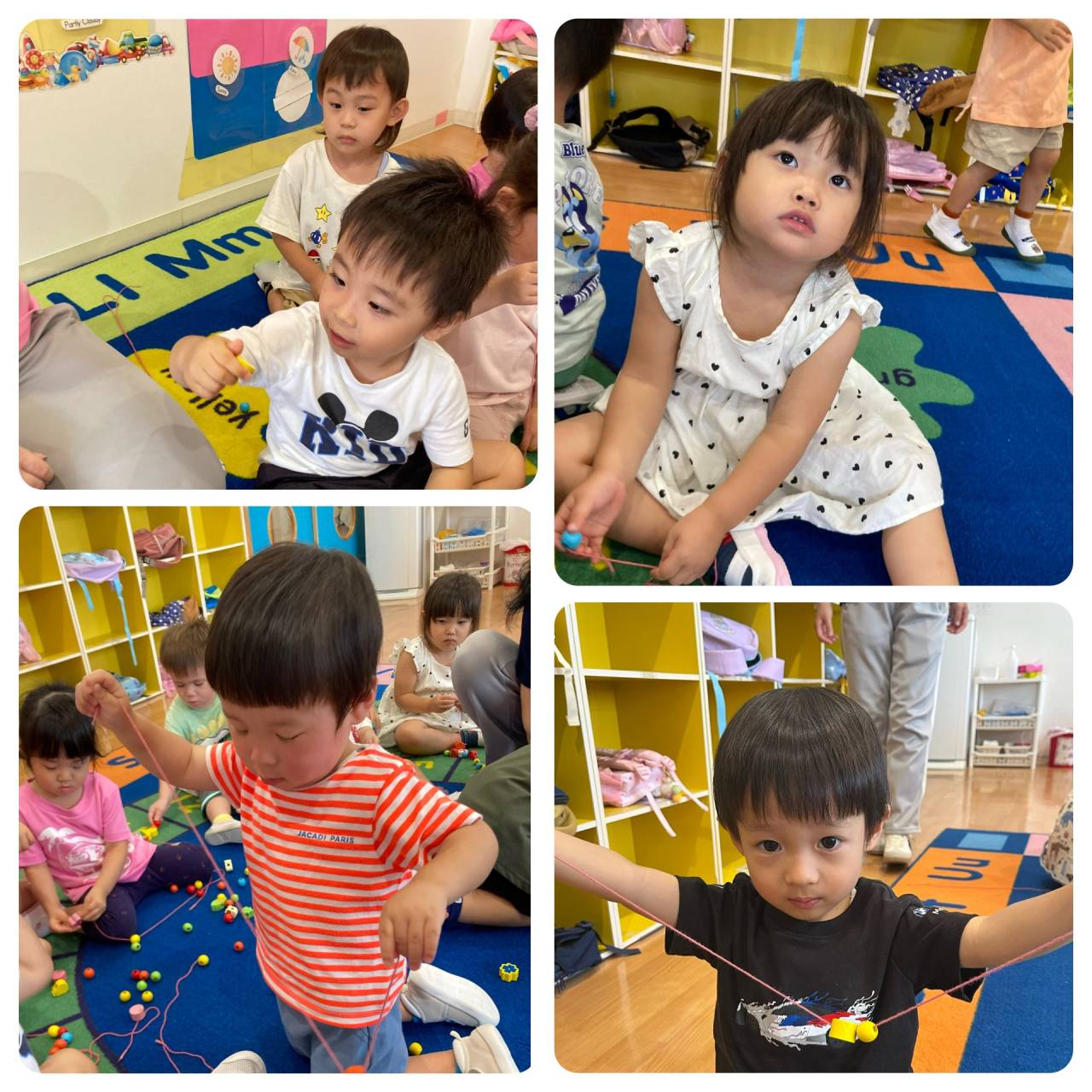 Hello, everyone! Preschool is back with a new activity! This time, we've got our wooden beads and strings! So how does it work?