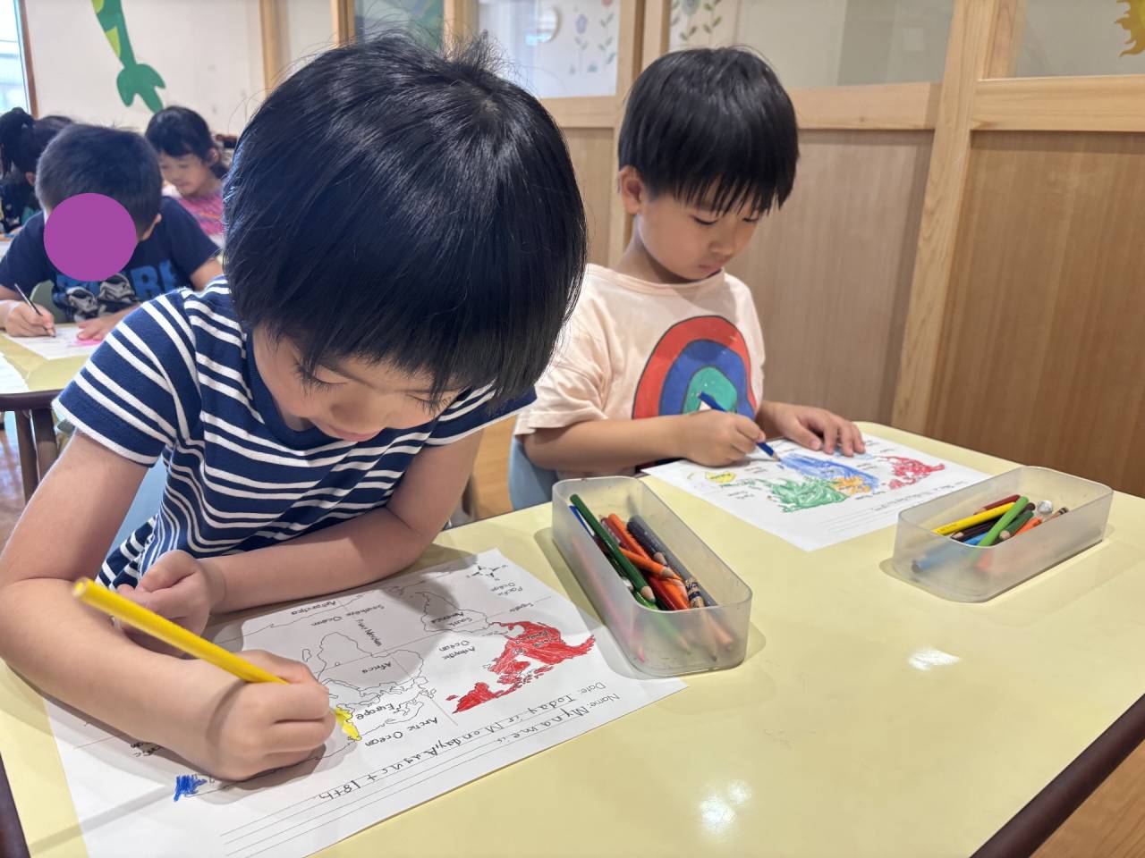 Everyone worked really hard to color neatly. We tried to give each continent a different color so it’s easy to see where one ends and the next begins.