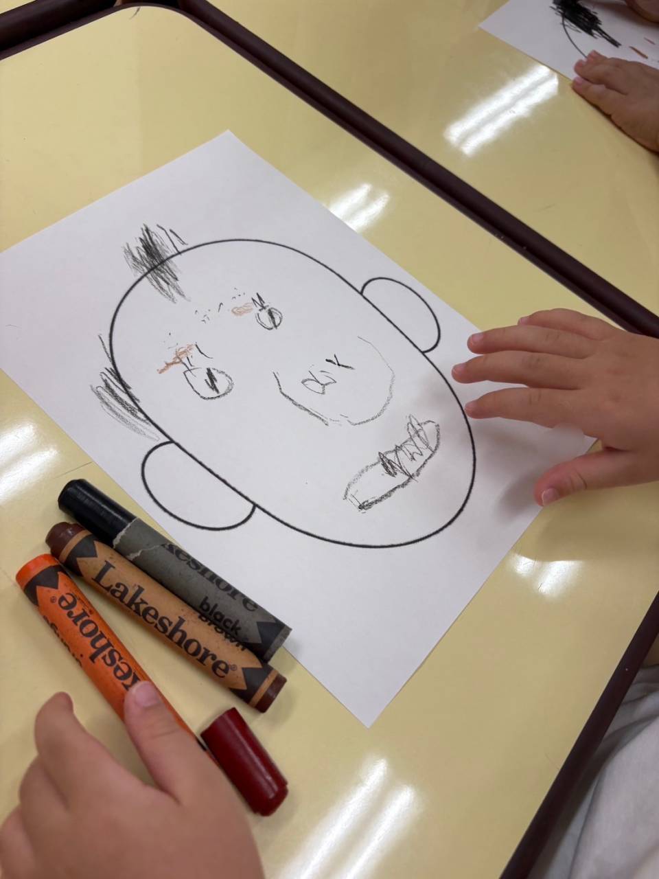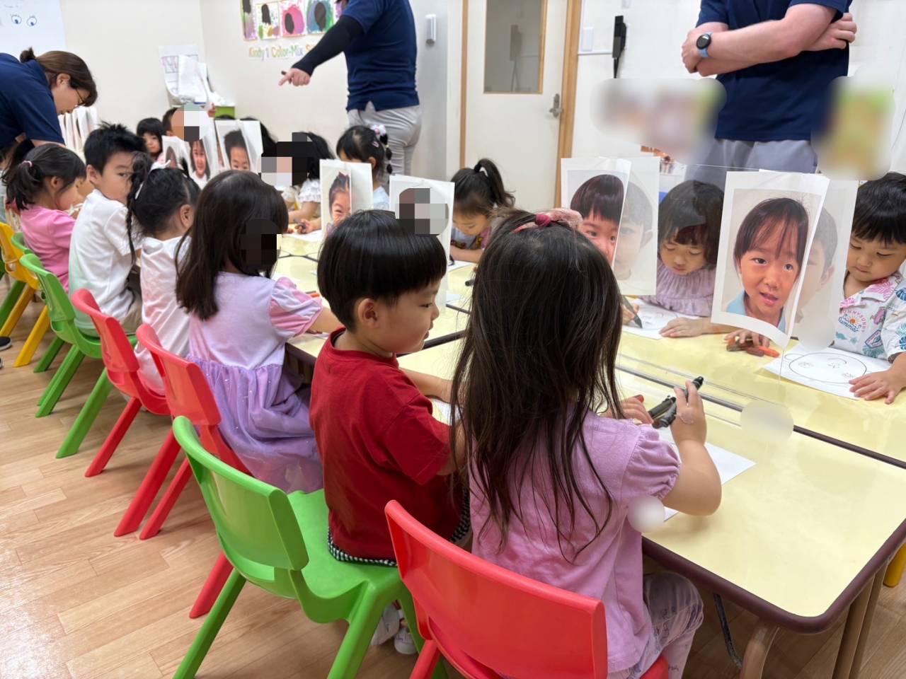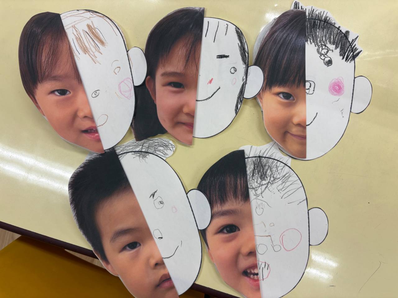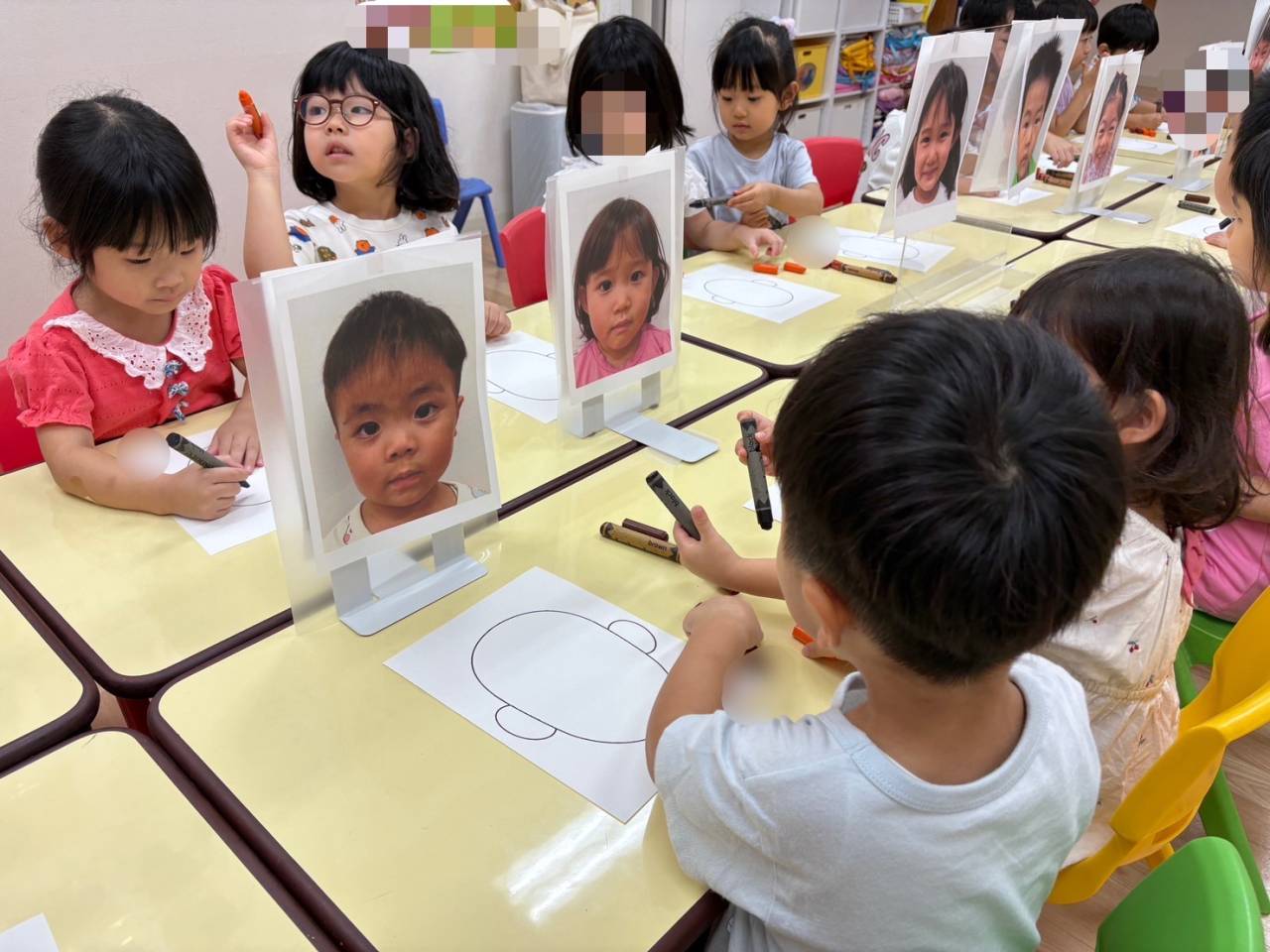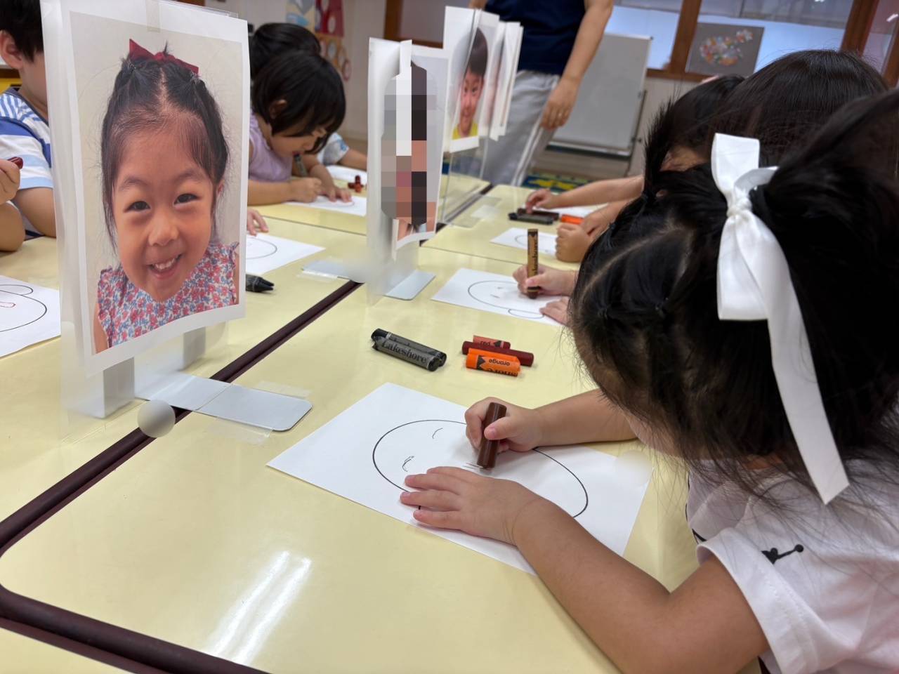 "Drawing our faces!" (自分たちの顔を描いてみよう!) ☆ Kindy 1 (年少クラス)