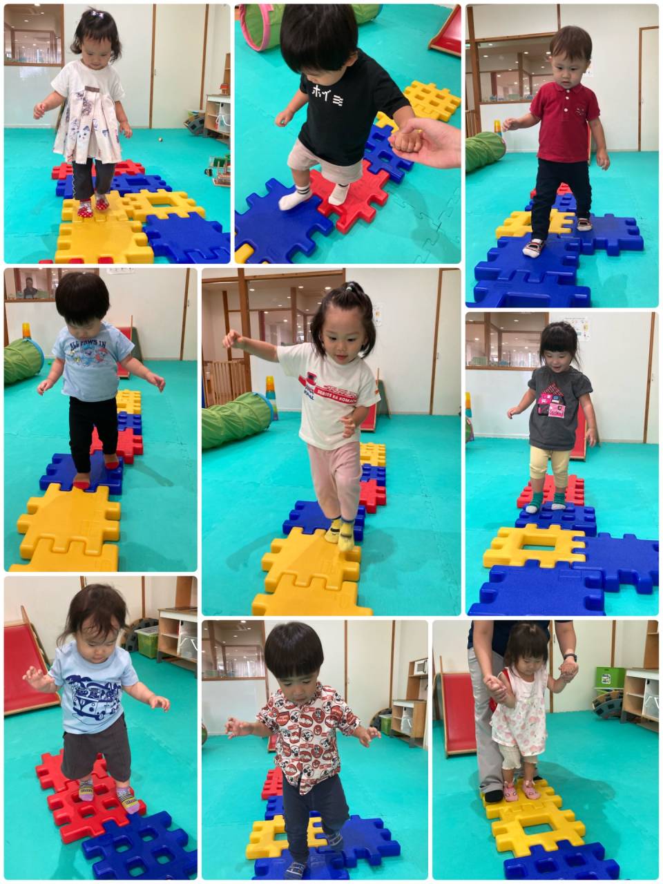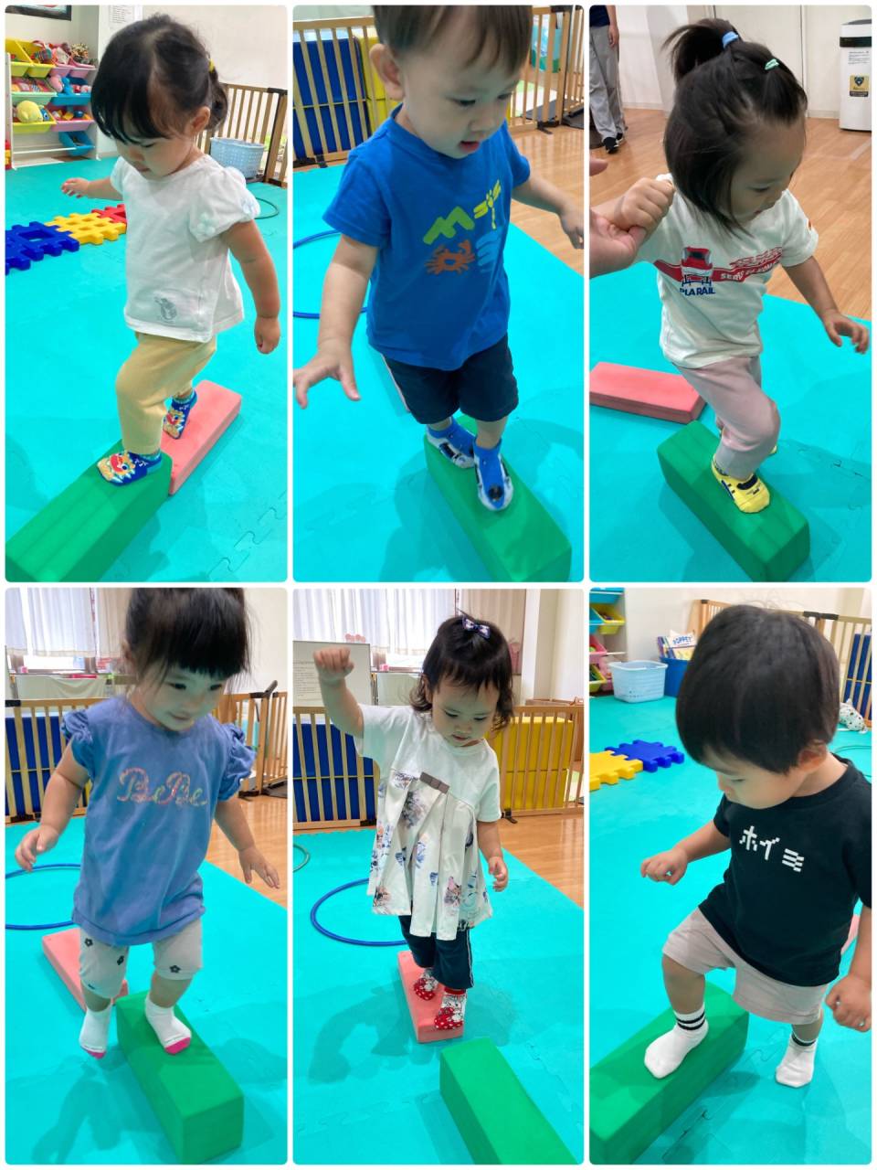 Next, we carefully walked across balance blocks. Each block had holes in different places, so we had to walk slowly and look carefully at where to put our feet.