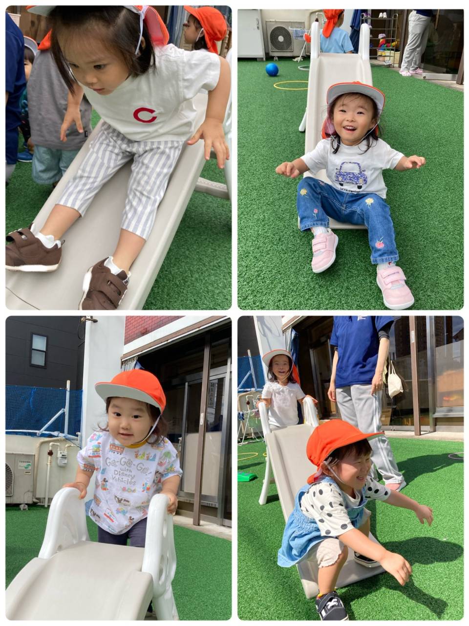 平均台と滑り台をつなげて、とてもアクティブに遊ぶ時もありますよ〜☆