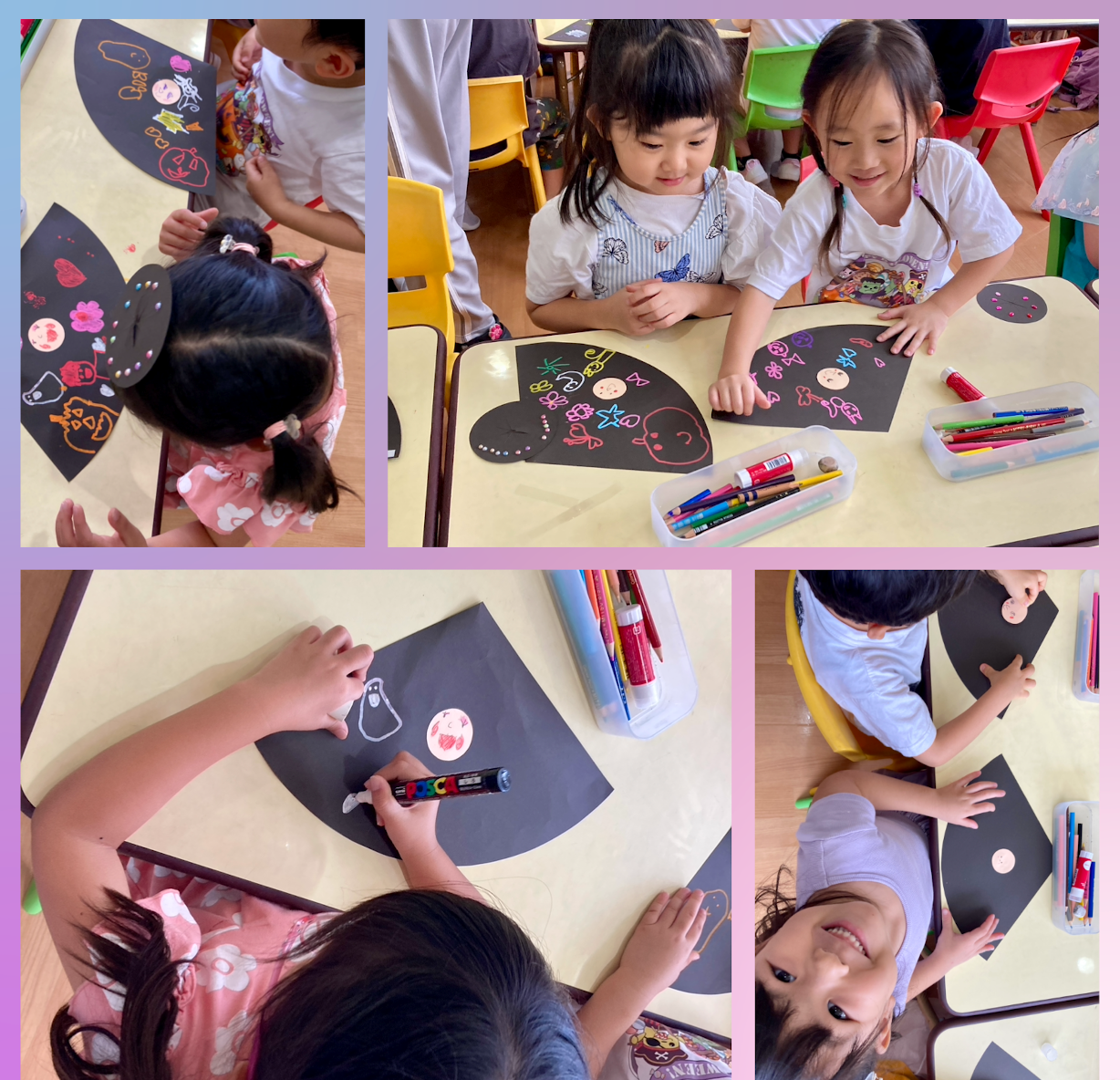 This week, Kindy 2 had a spooky fun time preparing something special for our school’s upcoming Halloween Party! Kindy 2 worked hard on a surprise Halloween craft that we can’t reveal just yet, we want to keep it a secret until the big day! They were very excited as they used markers to color different designs, added sparkling gems, and carefully practiced their cutting skills.