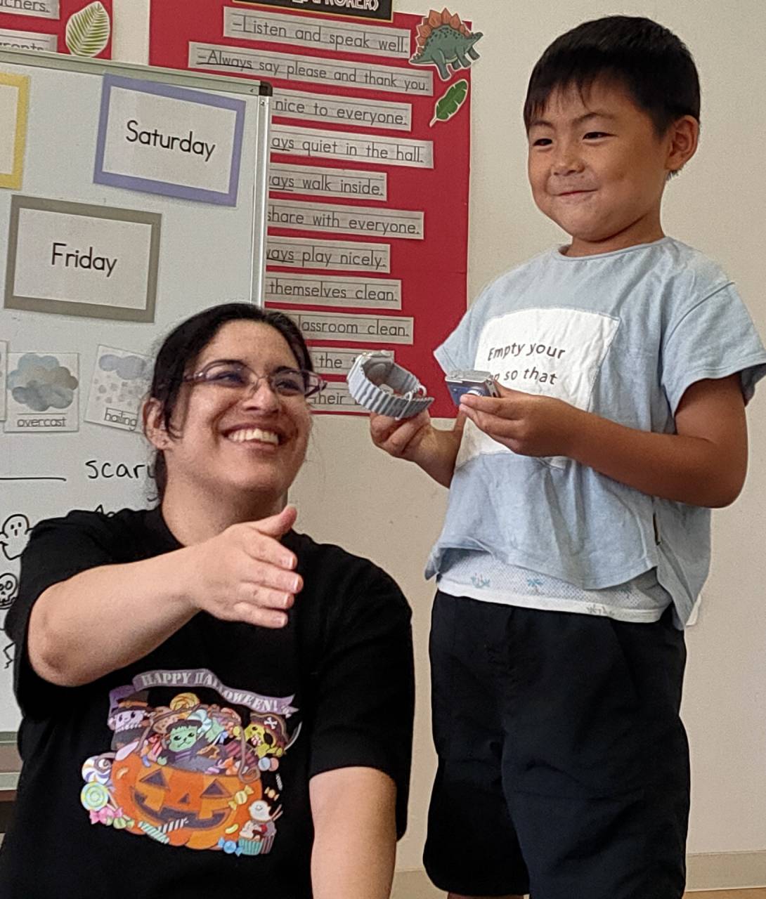 今日は “How tall is it?” と言いながら、いろいろなものの高さを測ってみました。