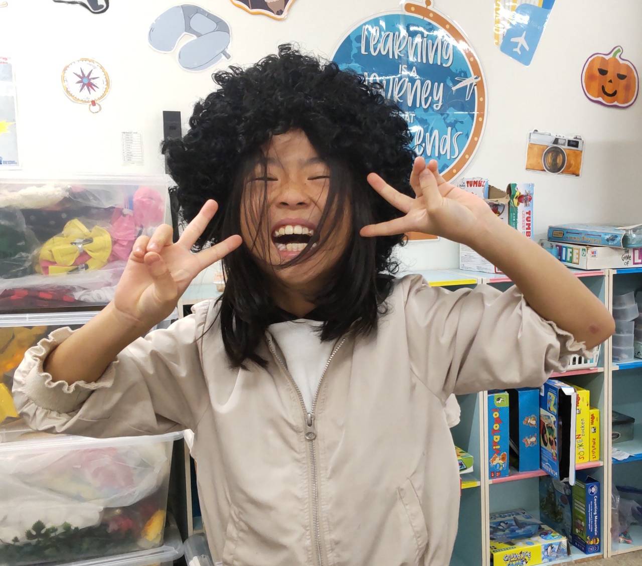出た目に合わせておかしな顔をしたり、かつらをかぶるまねをしたりと、みんな大笑いで大盛り上がりでした!
