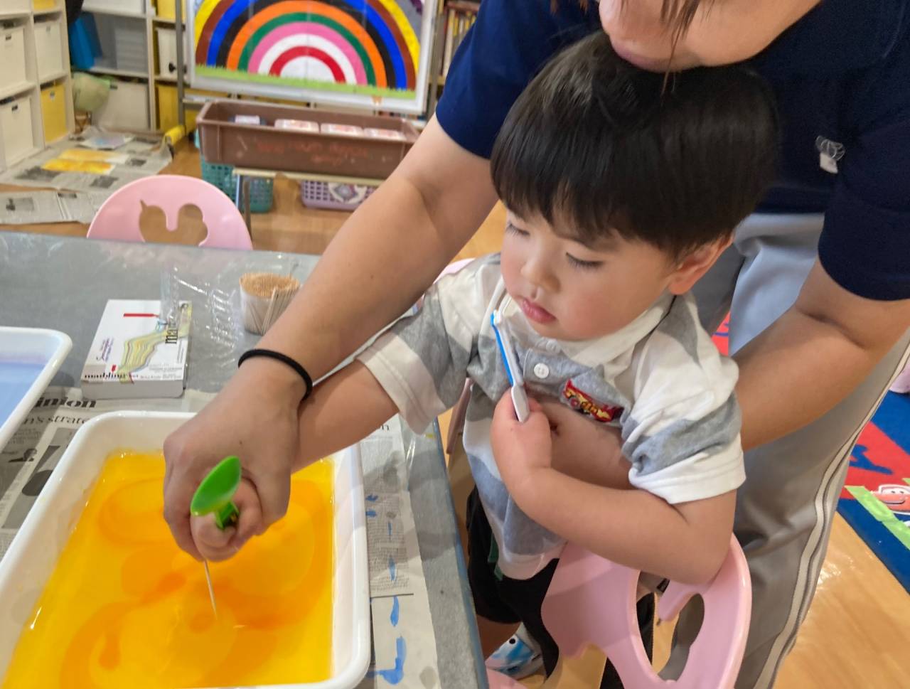 Everyone seems to be transfixed by the melded colors - each marbled sheet is unique!