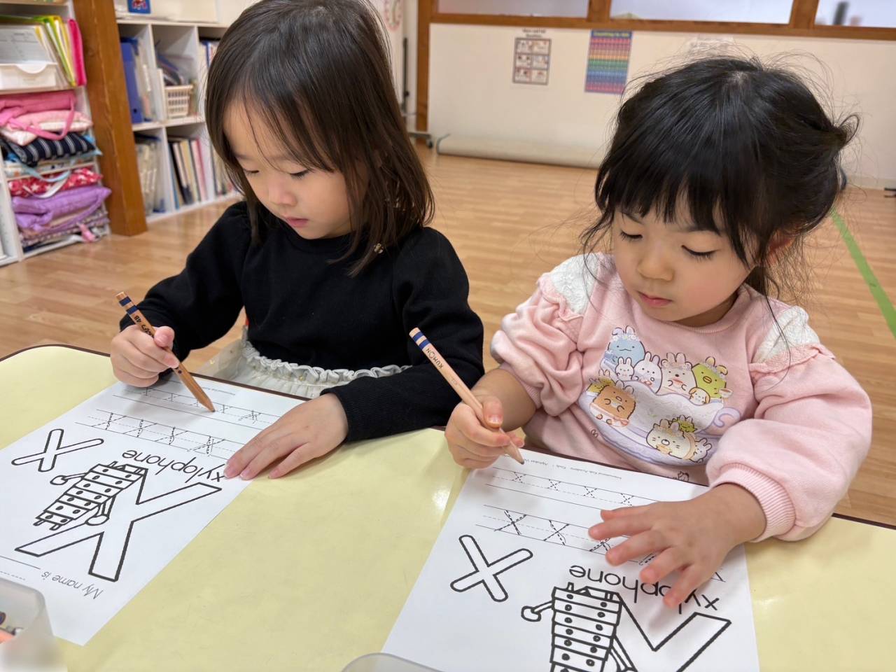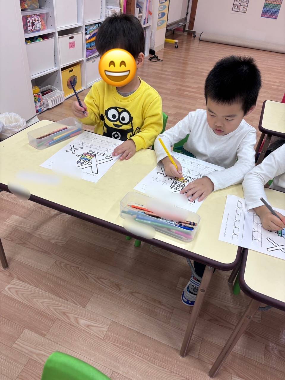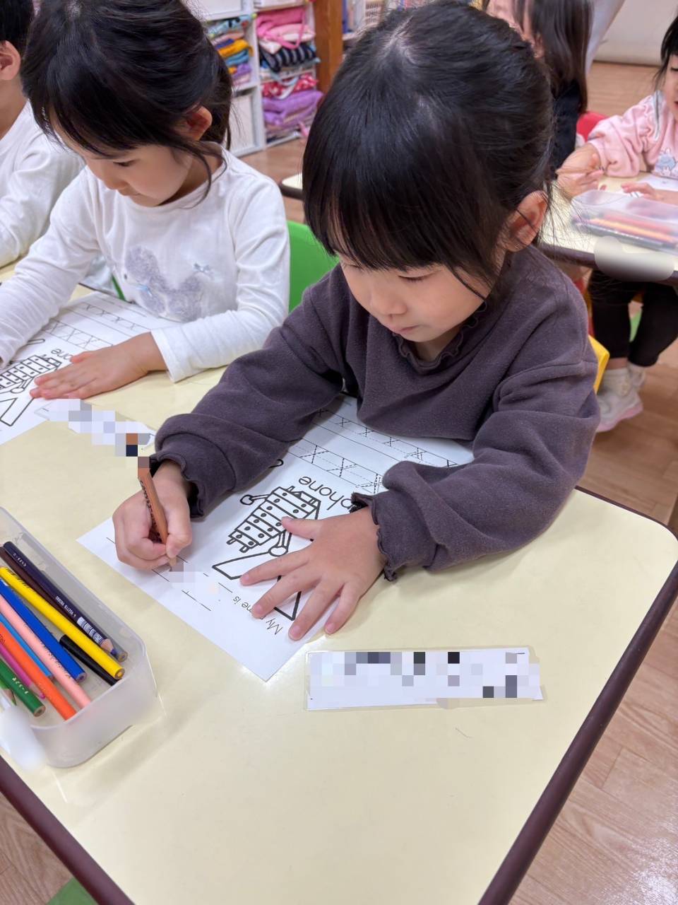 週に一度ある Japanese Lesson は日本語での会話が許される時間のため、みんなにとっては大好きな時間の一つのようです♪そんな Japanese Lesson ではひらがなの学習も進めています。その日に練習する文字を使った言葉なども一緒にみんなで確認します!お友だちの名前に入っている文字は「〇〇ちゃんの〇!」といった感じで紹介すると、本人は照れた表情で嬉しそうにしていてとってもかわいいです♡(笑)