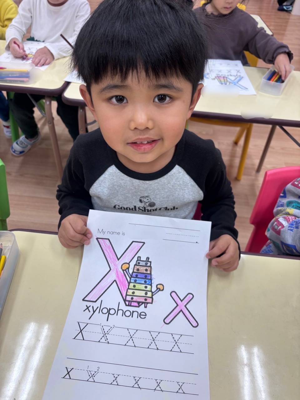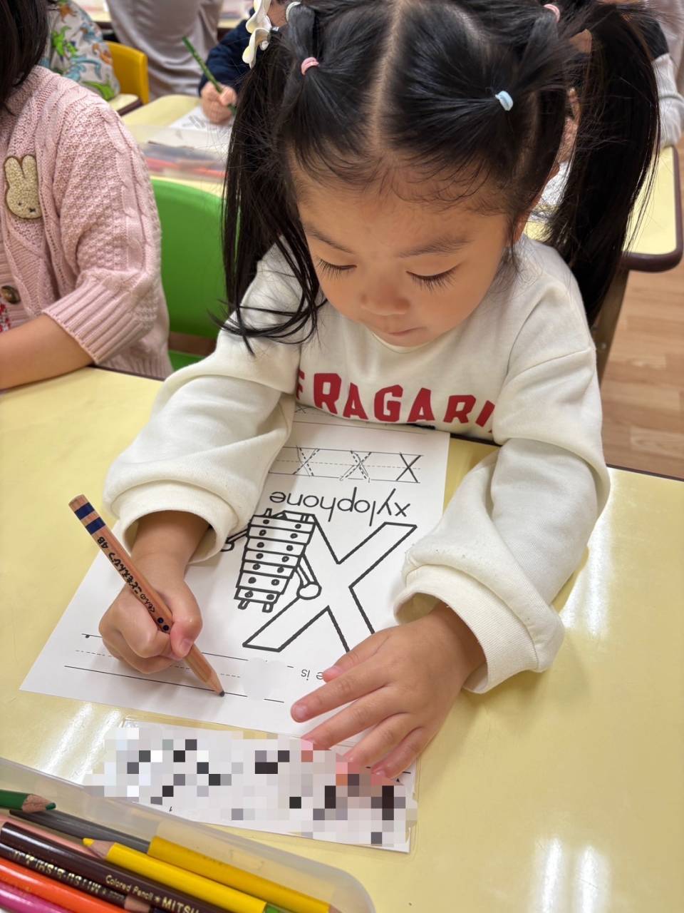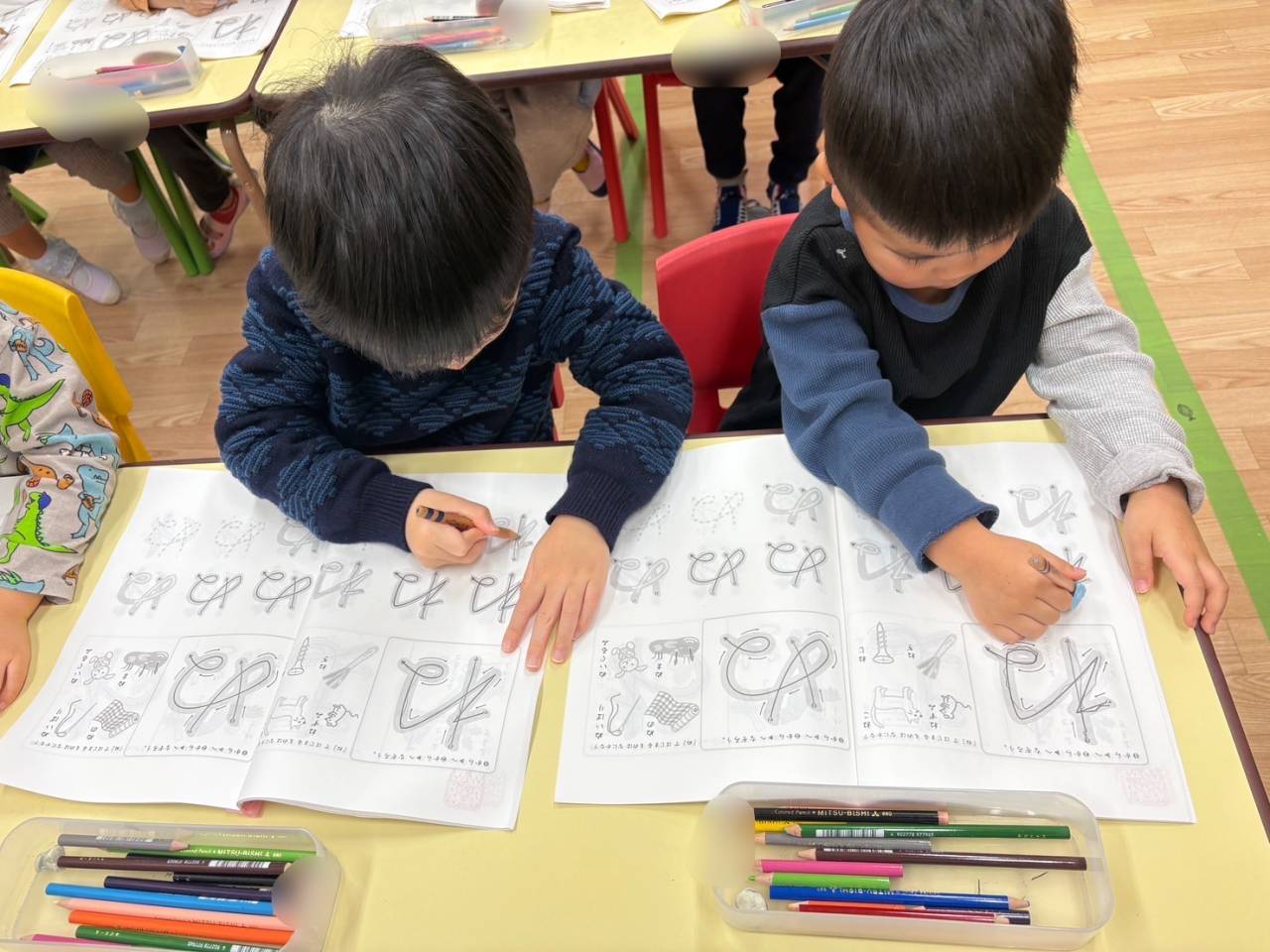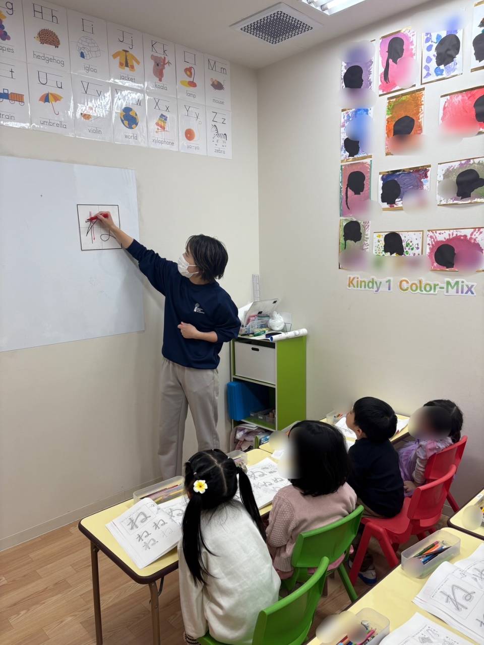 週に一度ある Japanese Lesson は日本語での会話が許される時間のため、みんなにとっては大好きな時間の一つのようです♪そんな Japanese Lesson ではひらがなの学習も進めています。その日に練習する文字を使った言葉なども一緒にみんなで確認します!お友だちの名前に入っている文字は「〇〇ちゃんの〇!」といった感じで紹介すると、本人は照れた表情で嬉しそうにしていてとってもかわいいです♡(笑)