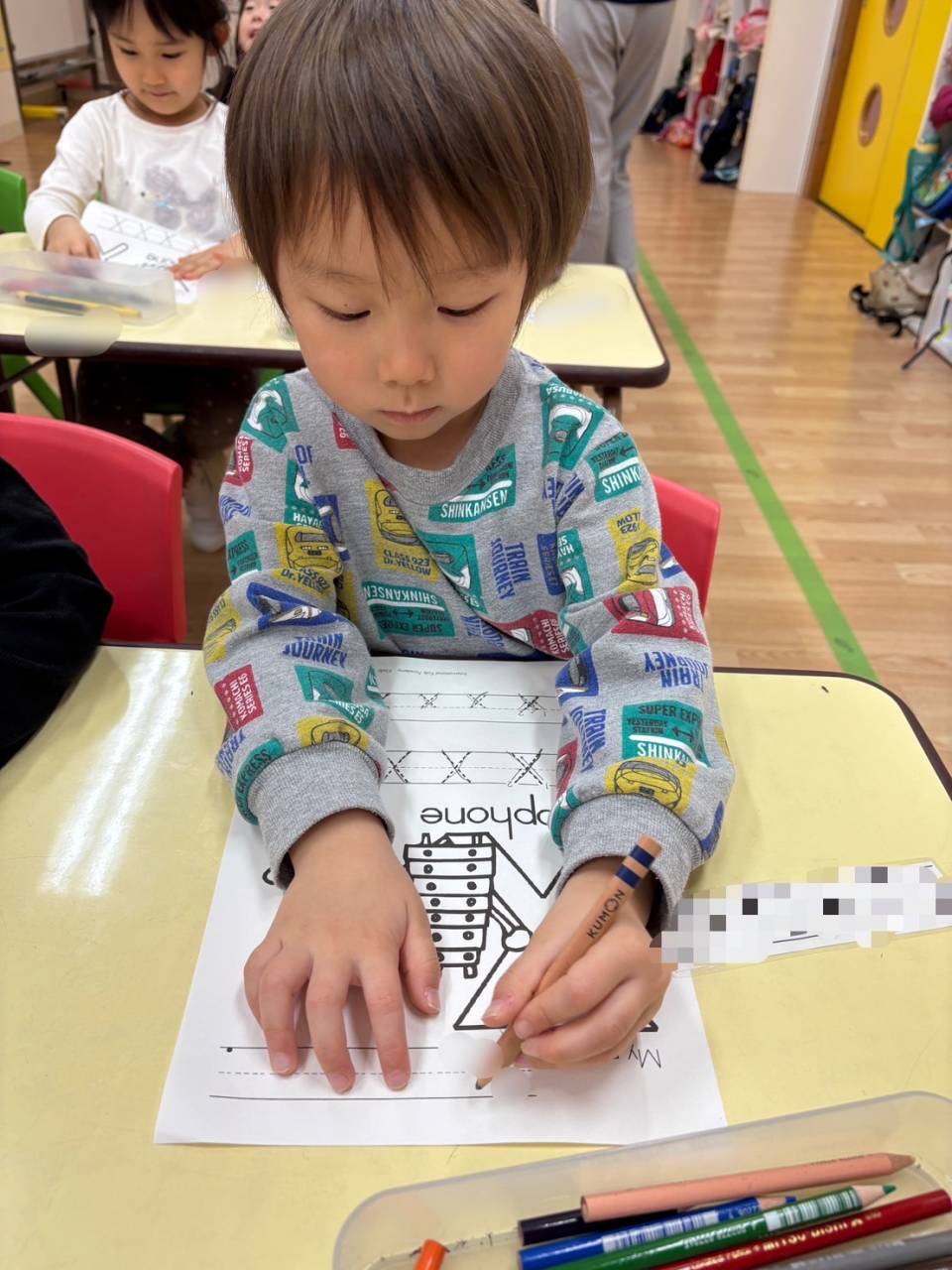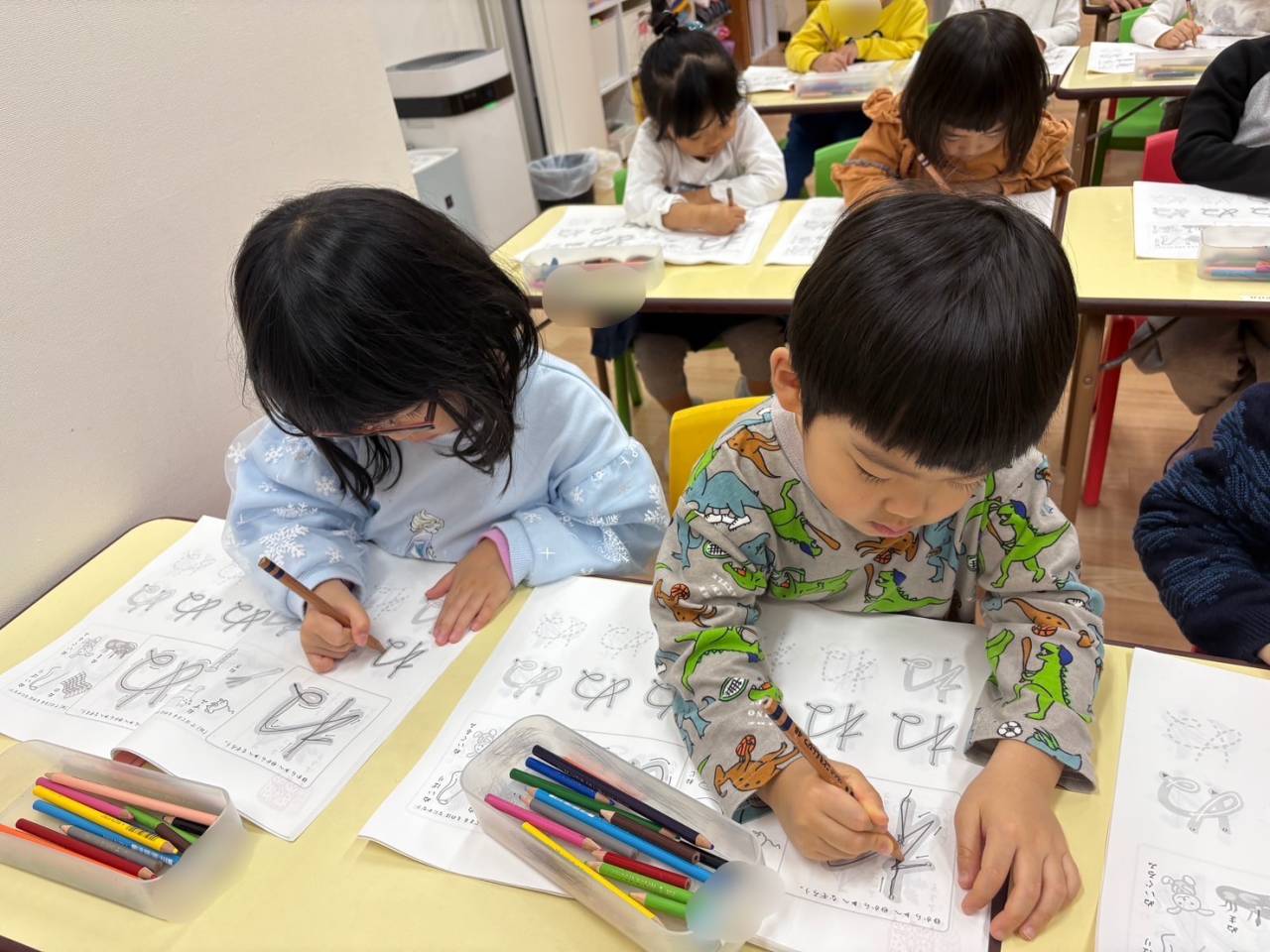 "Our writing lesson so far!" (文字を書く練習) ☆ Kindy 1 (年少クラス)