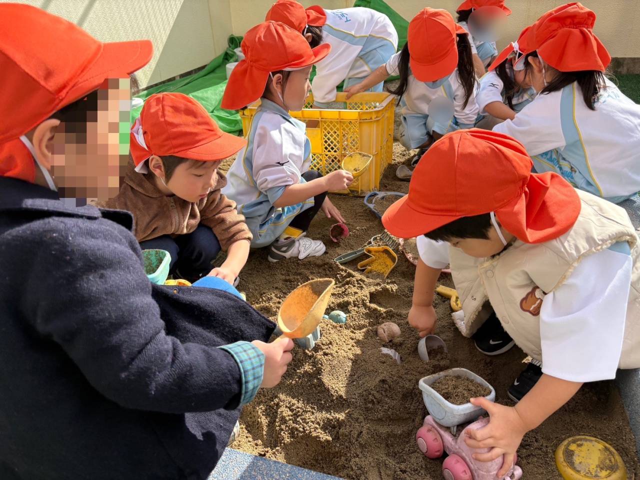 砂場を開放するとみんな一気に押し寄せて砂遊びを楽しんでいました(^^)