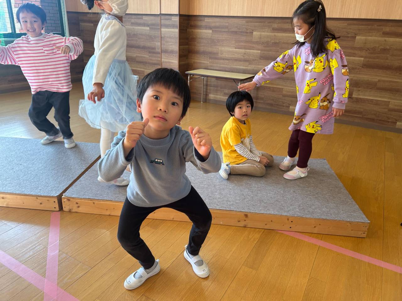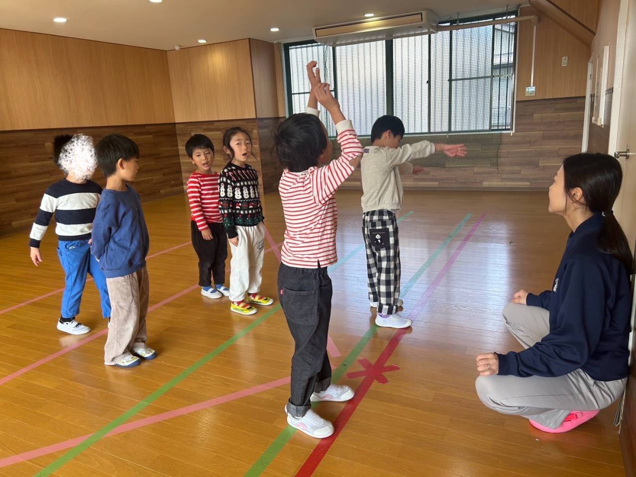 歌とダンスではダンスをしながら、大きな声が出せるように頑張っています。あとは曲に合わせてダンスするように、しっかりと音楽を聞くようにとも伝えています