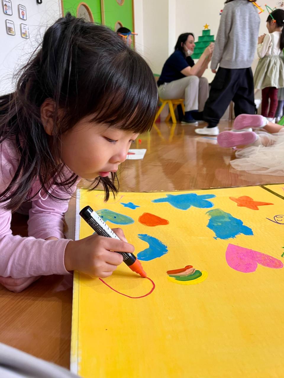 Along with painting, the children also enjoyed playing together with toys and taking some fun pictures afterward. It was a wonderful balance of effort and joy, practicing for the concert while also sharing happy moments as a class.