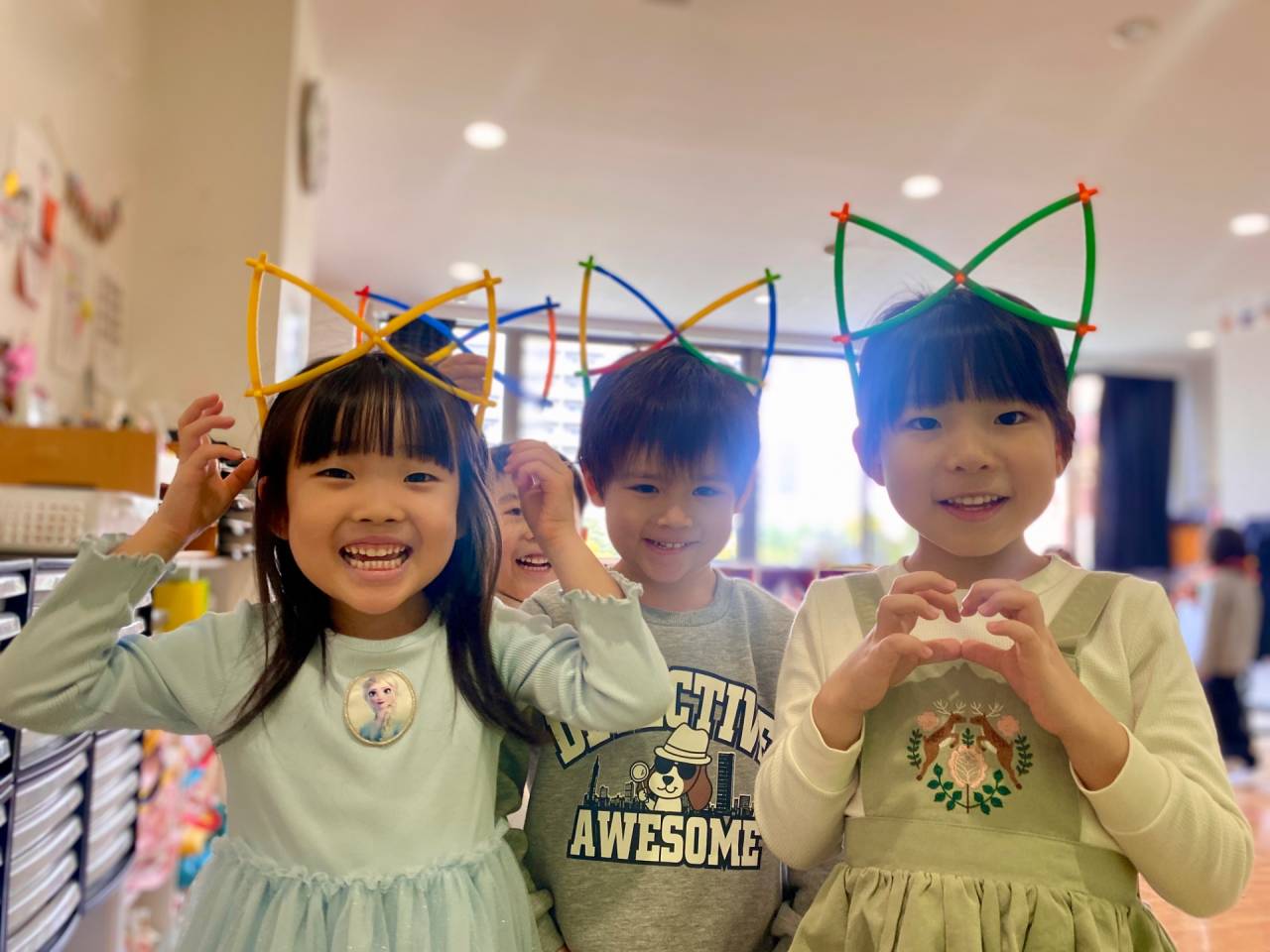 Each drawer is filled with their unique artwork,cute cats, colorful hearts, snowflakes, clovers, and other small designs that show their imagination and individual style. The dresser now feels bright, cheerful, and full of Kindy 2's personalities.