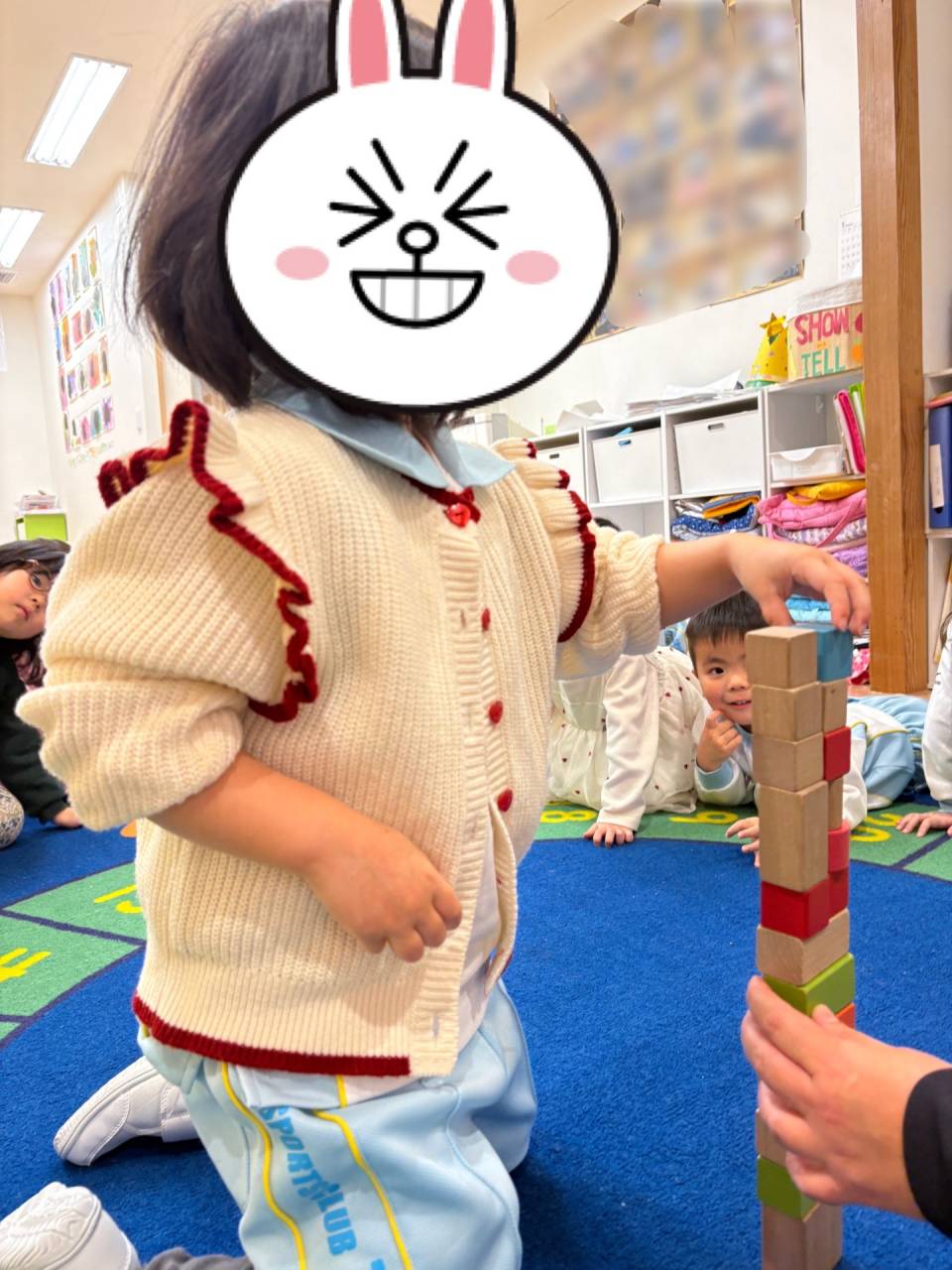For a challenge, we decided to see if we could make a skyscraper using a block from everyone in Kindy 1, so 21 blocks!