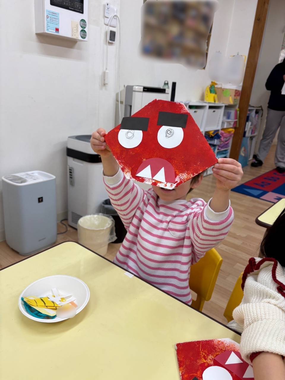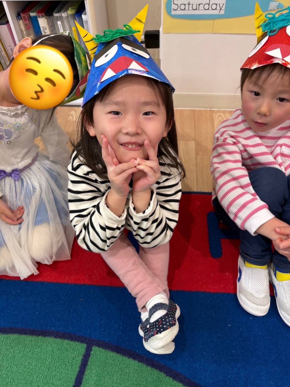 火曜日は節分でしたね!お家で豆まきはしましたか?IKAではKindy合同での節分イベントが開かれ、みんなで一緒に豆まきをしました。その節分イベントに向けてオニの帽子を作ったので、今回はその時の様子をご紹介します♪