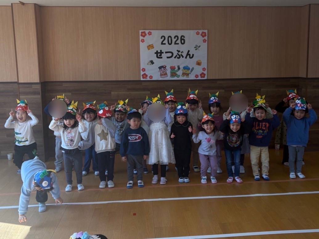 節分イベントではこの日まで練習してきた「おにのパンツ」を披露しました!最後はみんなで練習したポーズもバッチリと決めてとってもかわいかったですよ(^^)みんな頑張ったね!素敵だったよ!