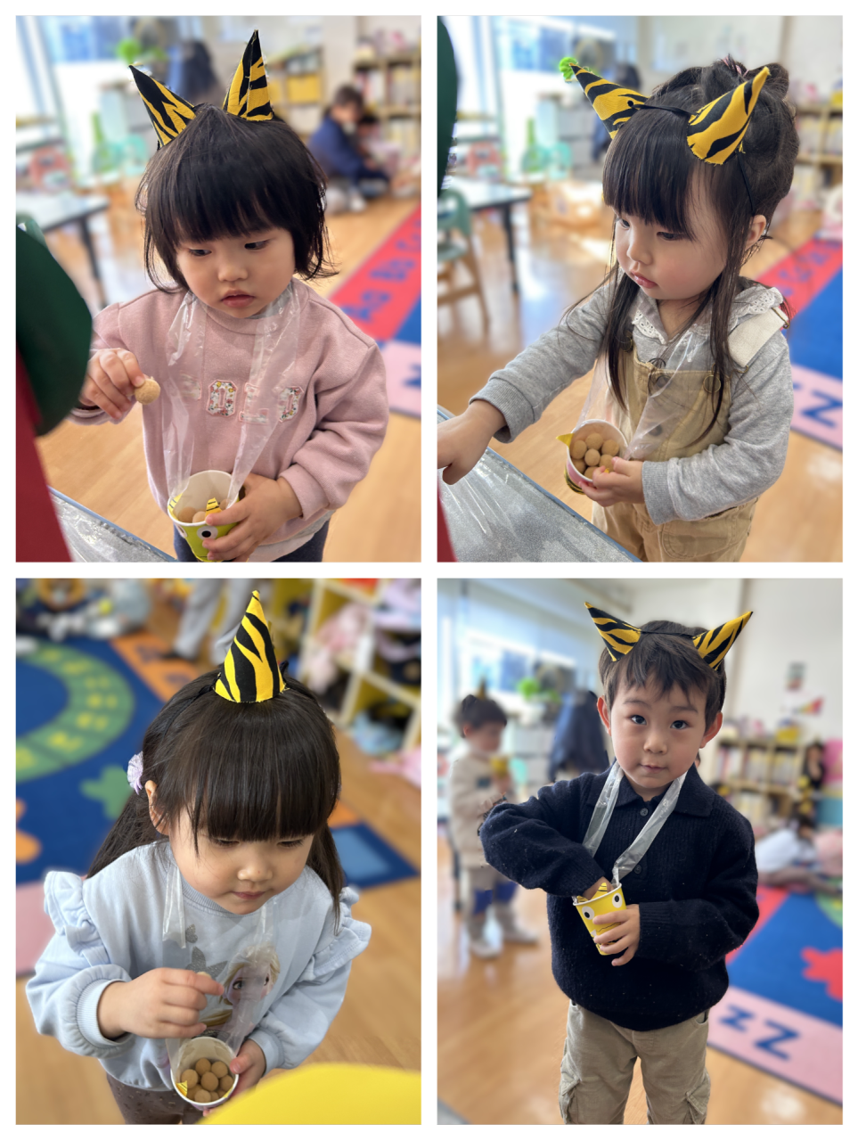 2/4には鬼の大きな口の中に豆を投げ入れるゲームを楽しみました♪