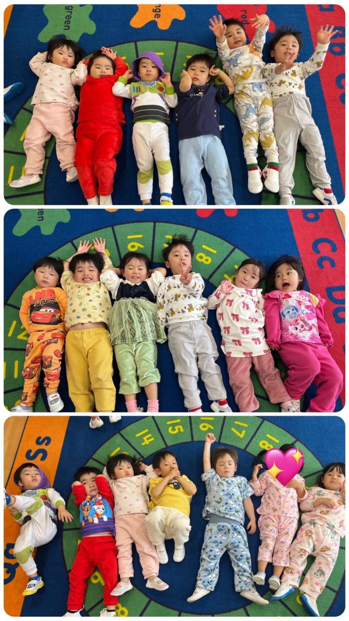 We all tried a biiig stretch to get cozy, enjoying our lovely pajama day! Amazing job, preschool!