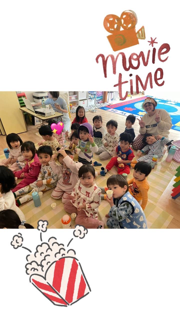 Our first order of cozy business was to watch movies and eat popcorn with Kindy 1! We watched Bluey together on the projector while enjoying popcorn!