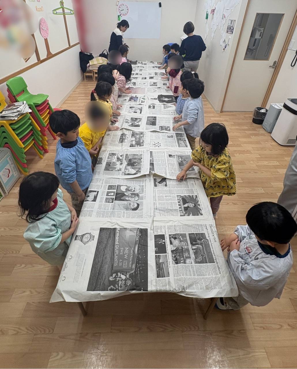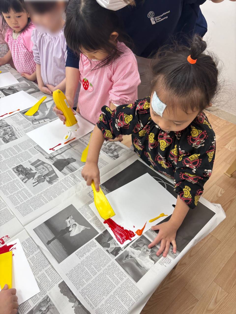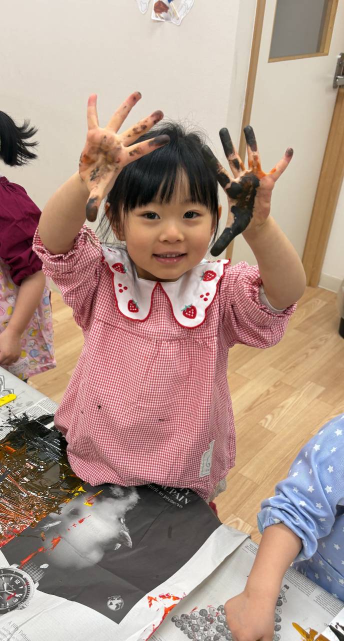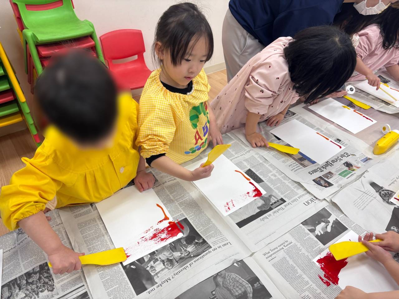 Once we were ready, Megumi showed us how to paint the sunset using a scraper tool to drag the paint from left to right!