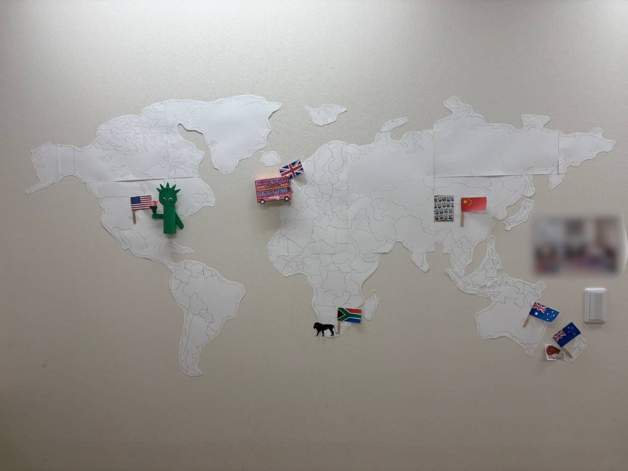 We added our lion and flag to our world map too! We have explored so many countries in Kindy 1!
