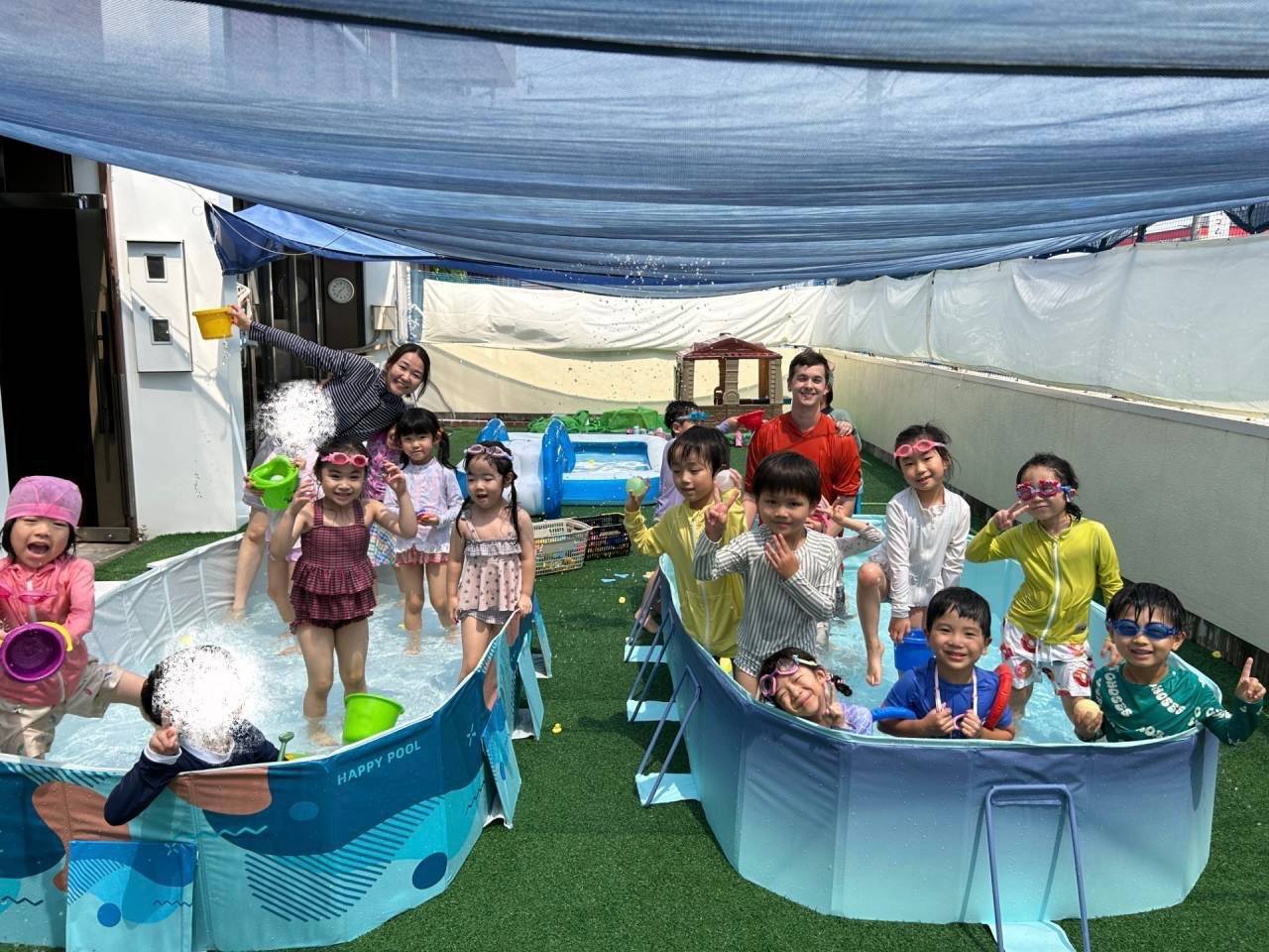 夏は水遊びもあったよ!お友達や先生に水をかけあって楽しい日々を過ごしました( *´艸`)
