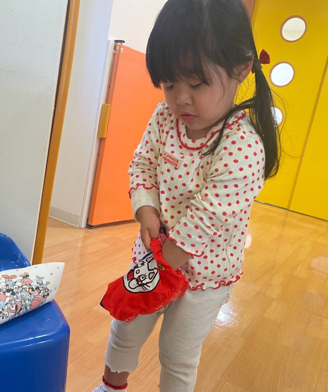 The first step to brushing our teeth is to find our toothbrush bag and get our brush and cup!