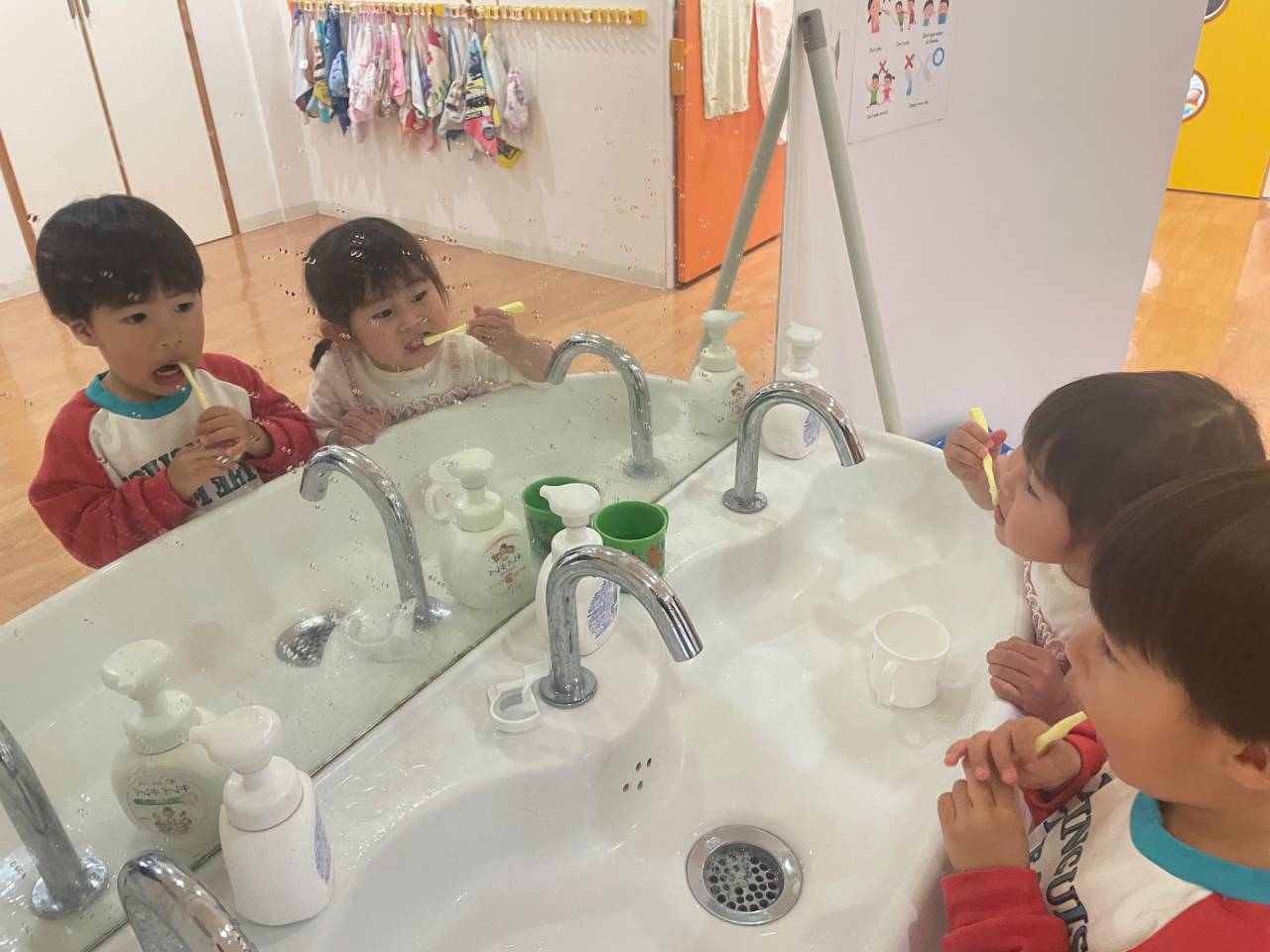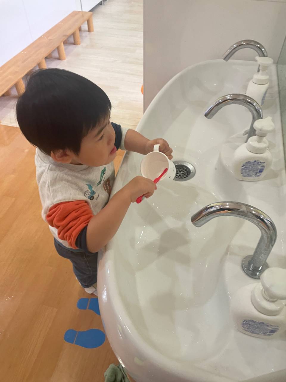 Hello, everyone! Preschool is here to show off a new part of our daily routine! We brush our teeth after lunch so they stay strong and shiny!