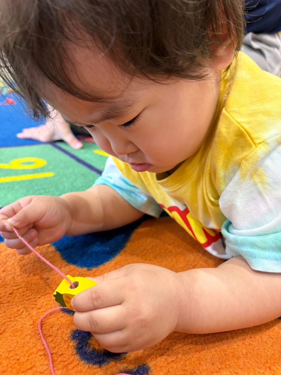 新年度がスタートして2週間が過ぎ、レッスンだけではなくいろいろな遊びも楽しんでいます(^^)今回は指先を鍛えるのにも有効な紐通しで遊んだ時の様子をご紹介したいと思います!